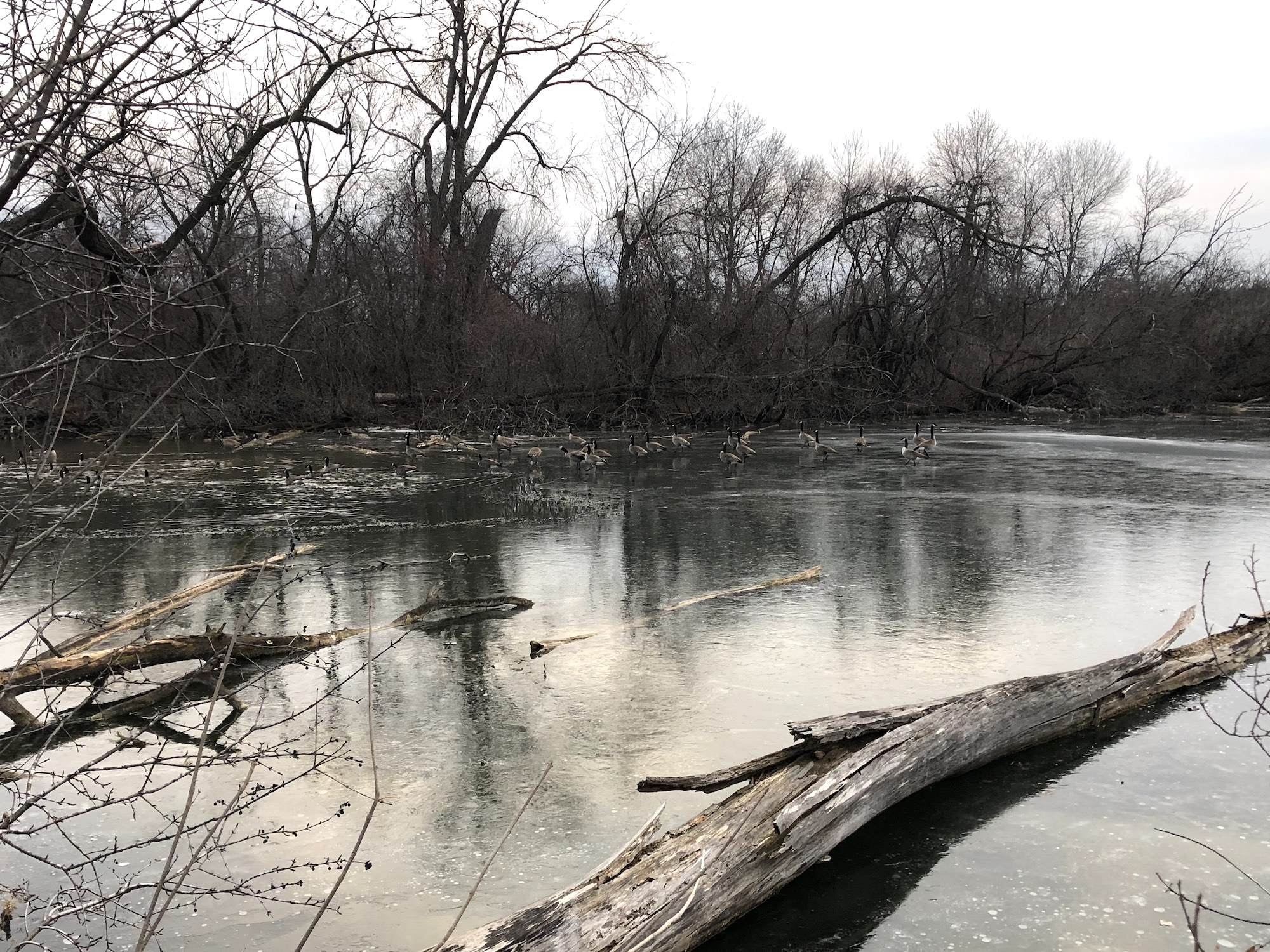 Geese dancing on frozen lip.