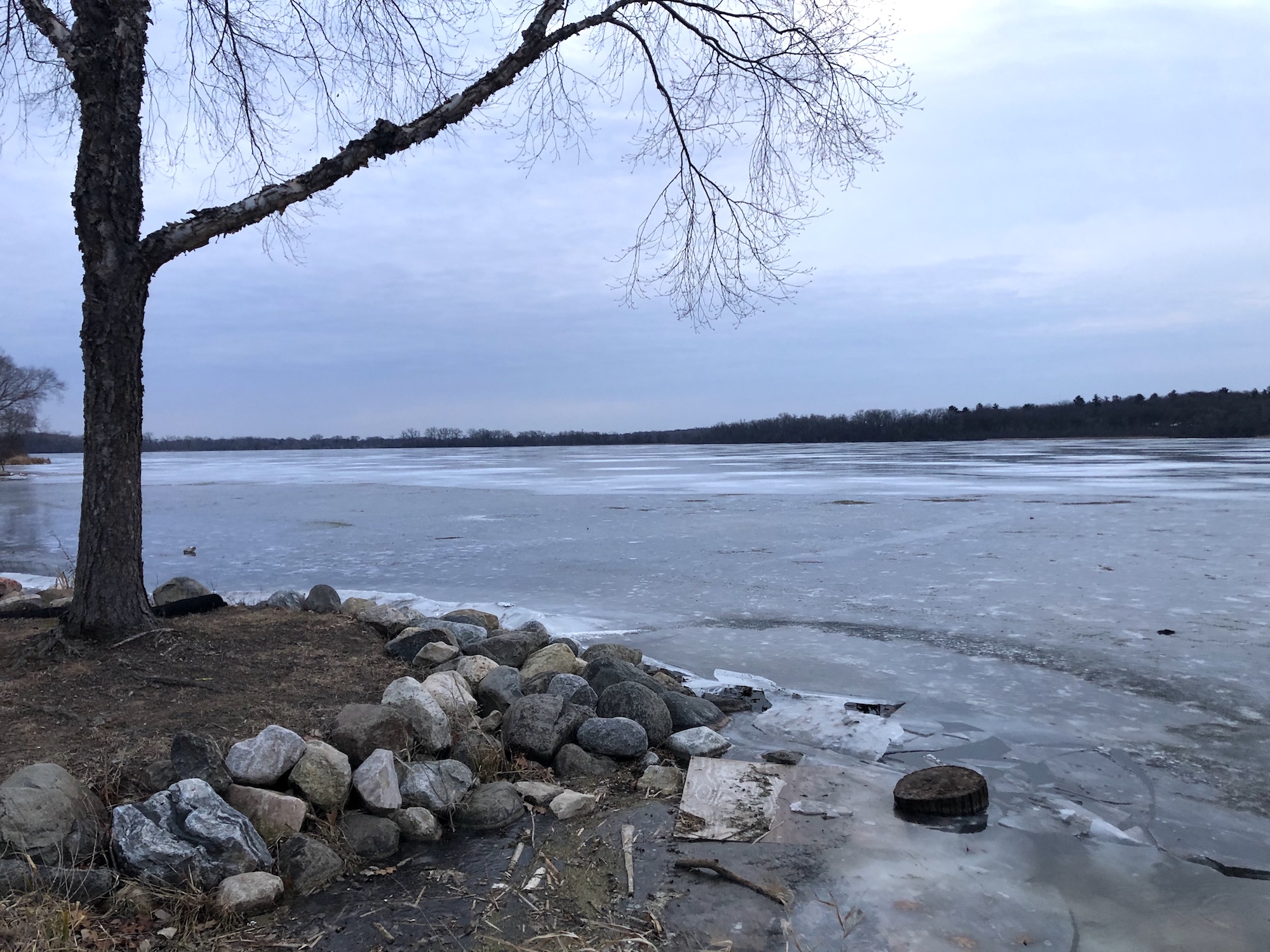 Wingra ice two inches thick.