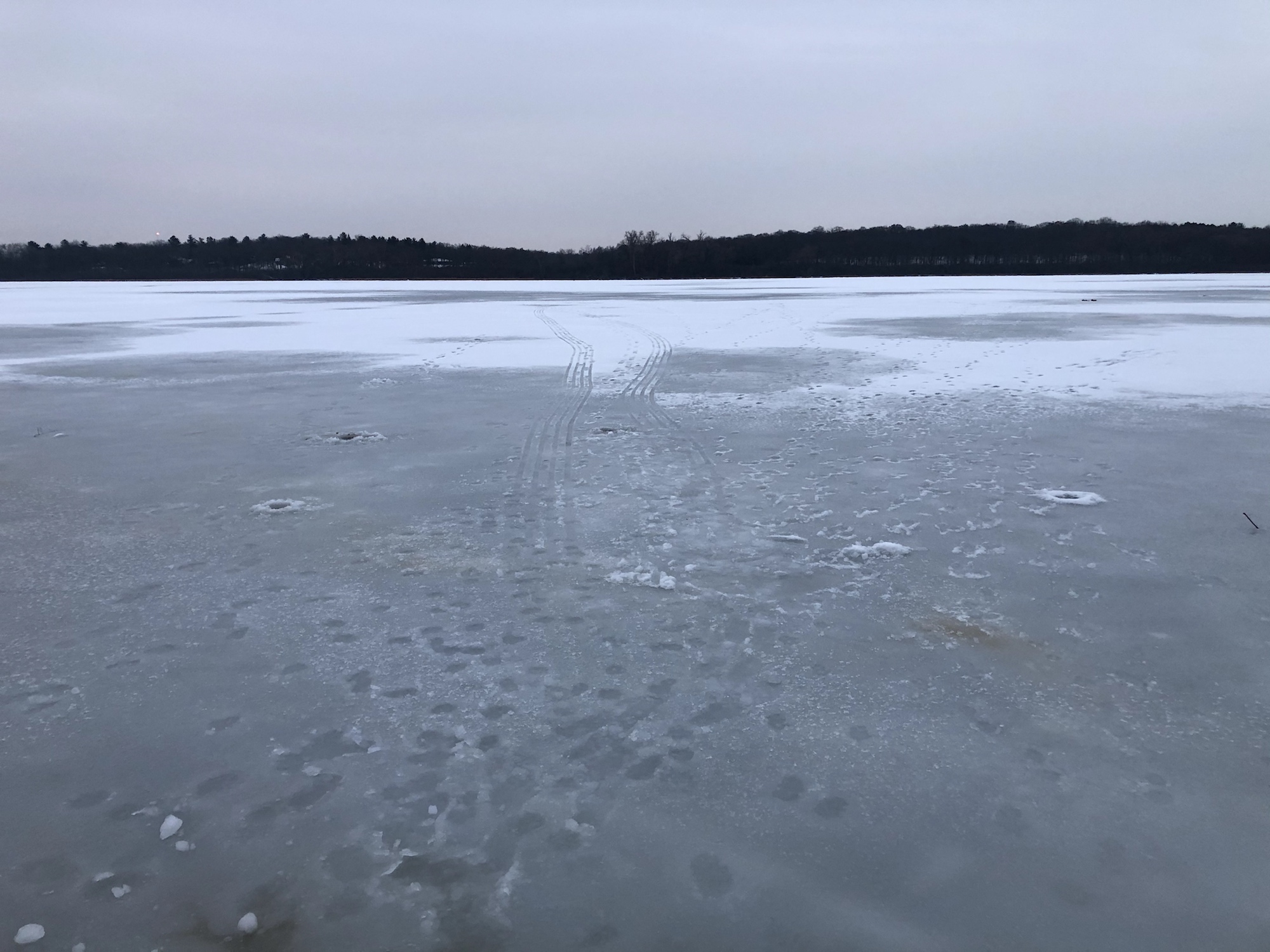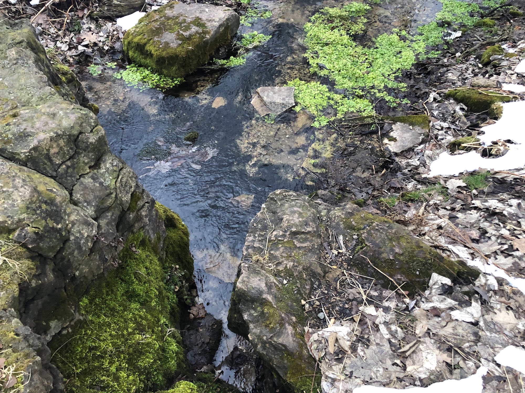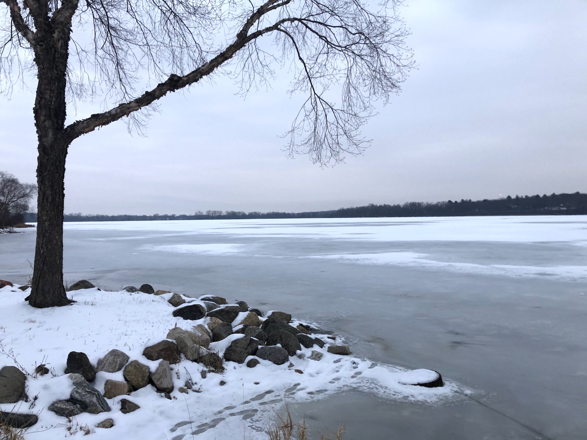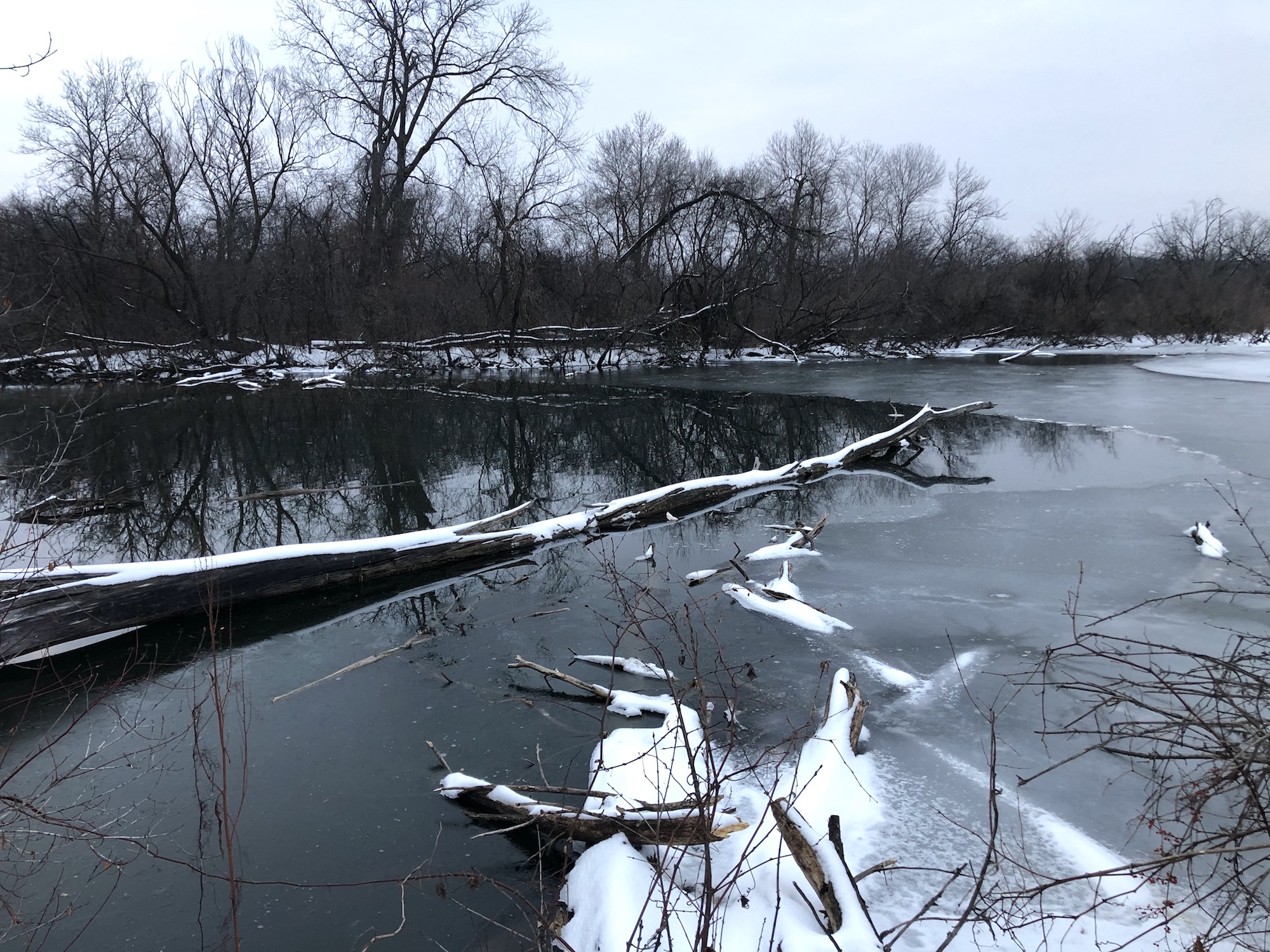 No movement. No Geese. And then, Cardinals appear. Springs flow. Raccoon tracks.