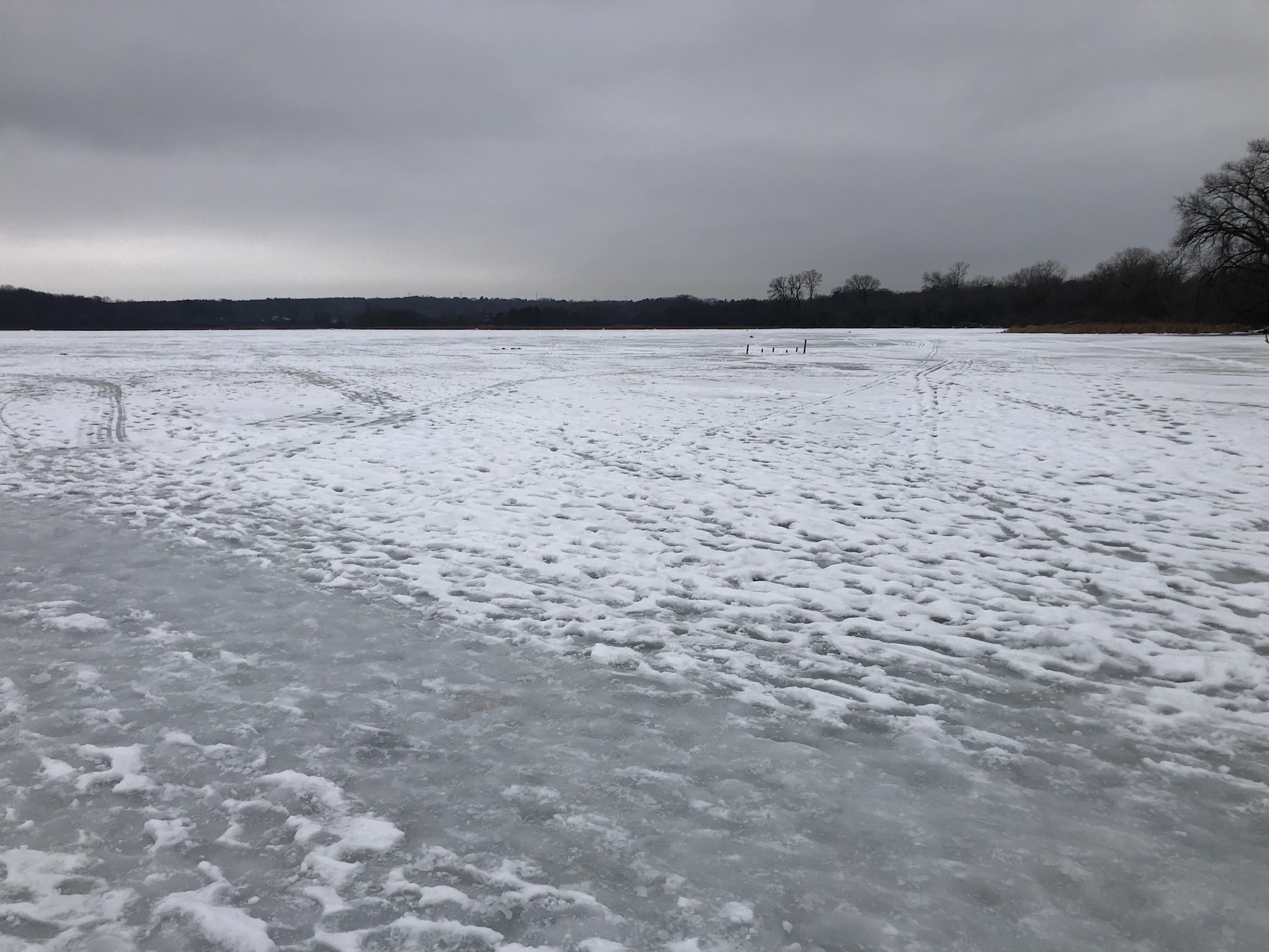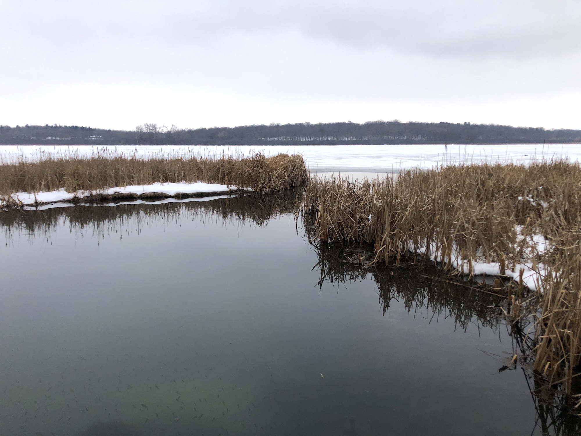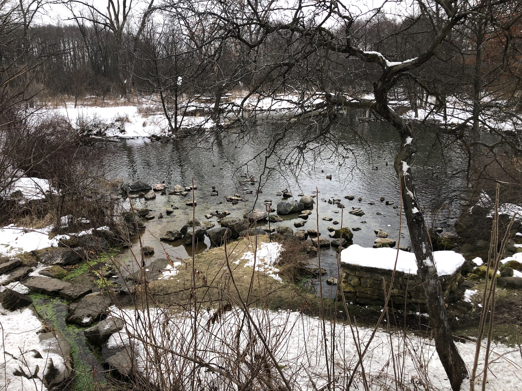 Ducks flocked in Duck Pond.