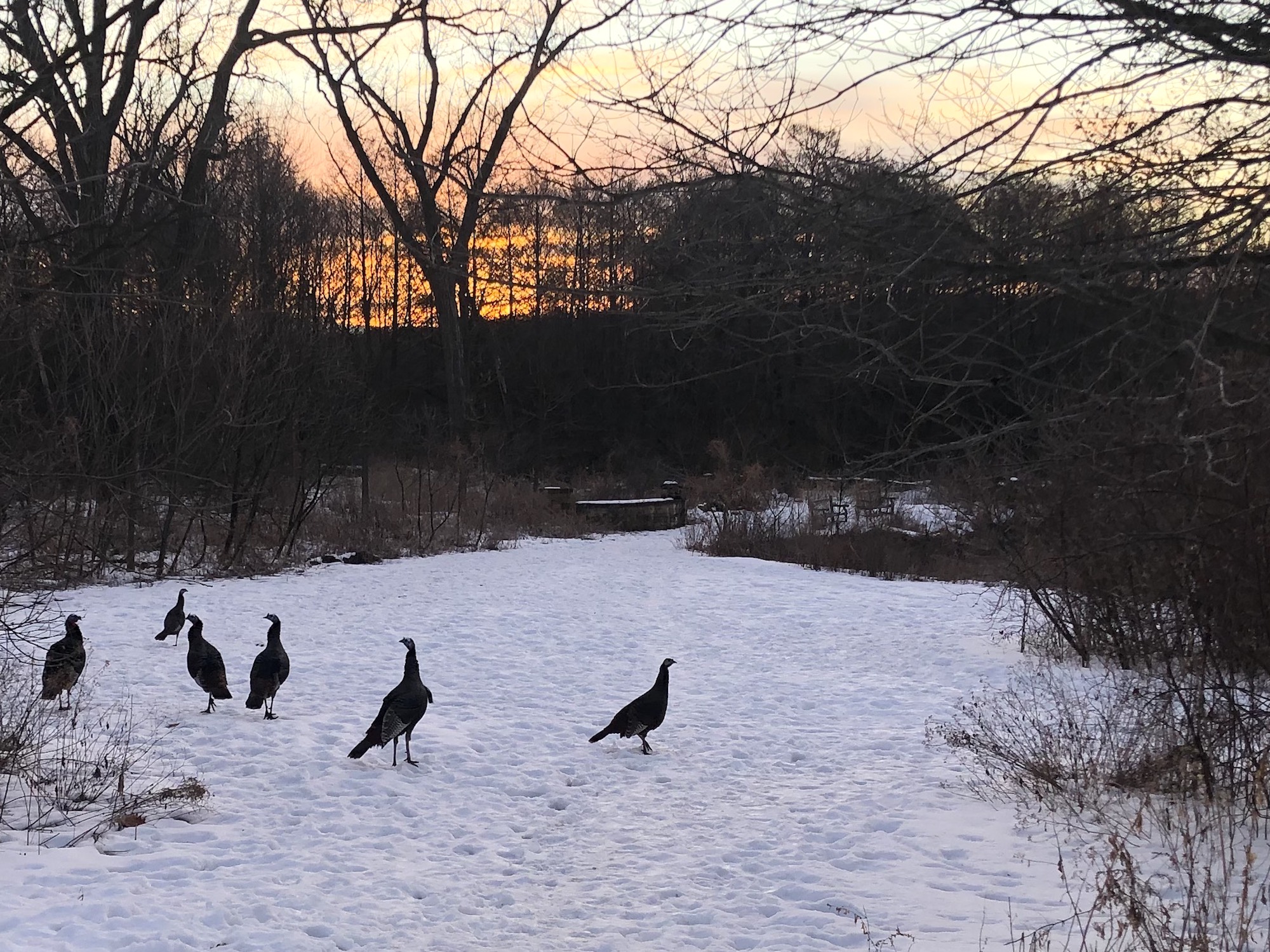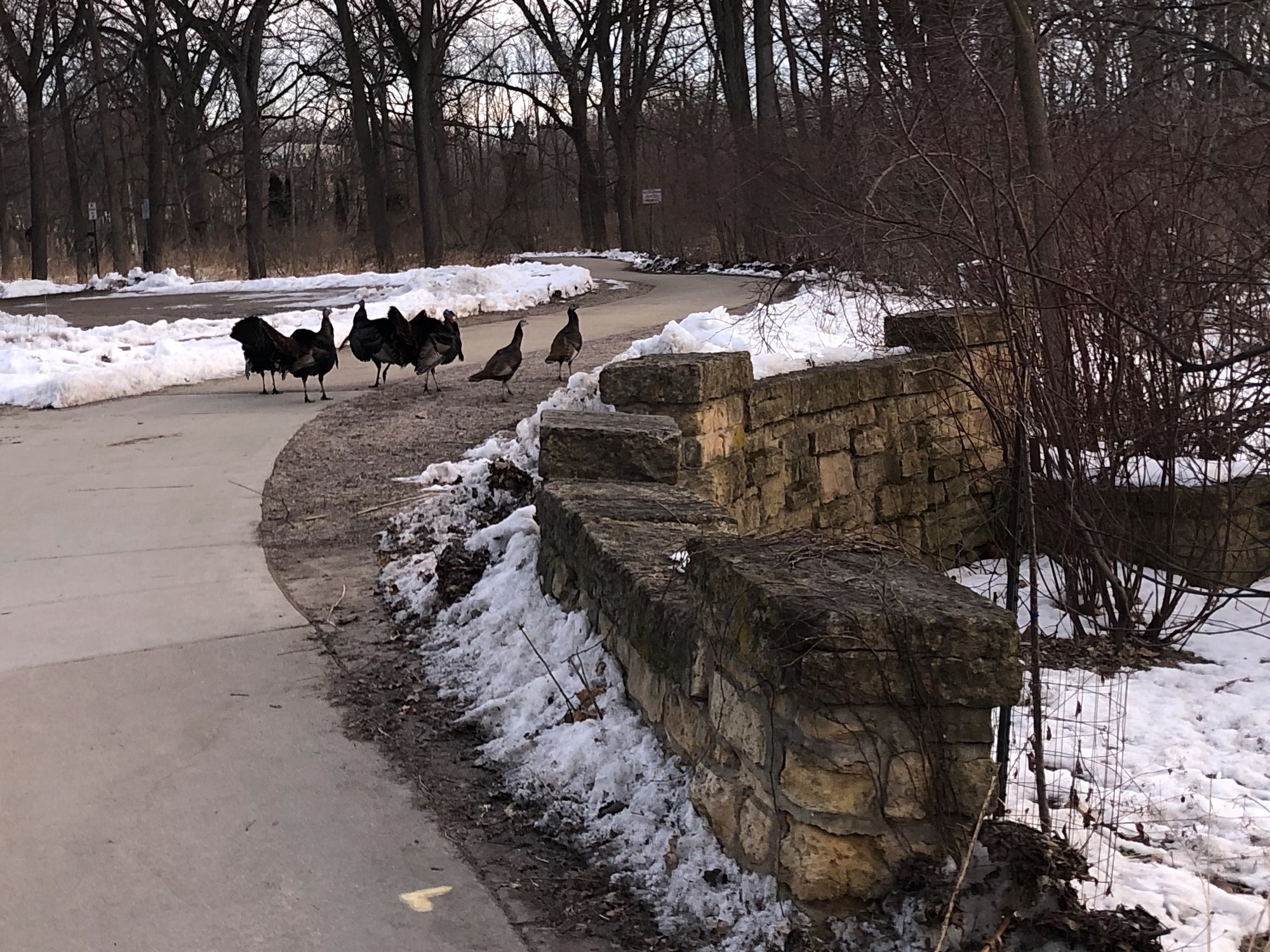 Wild turkeys flocked –