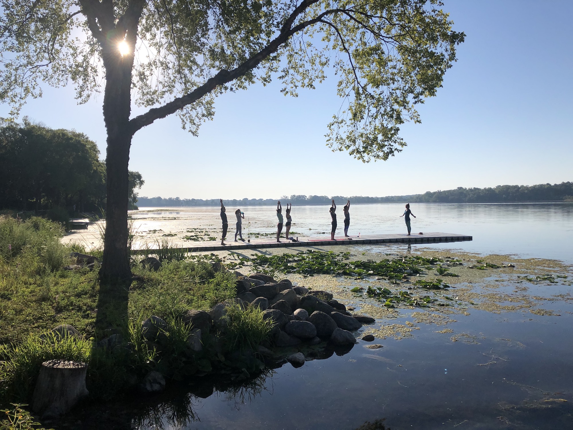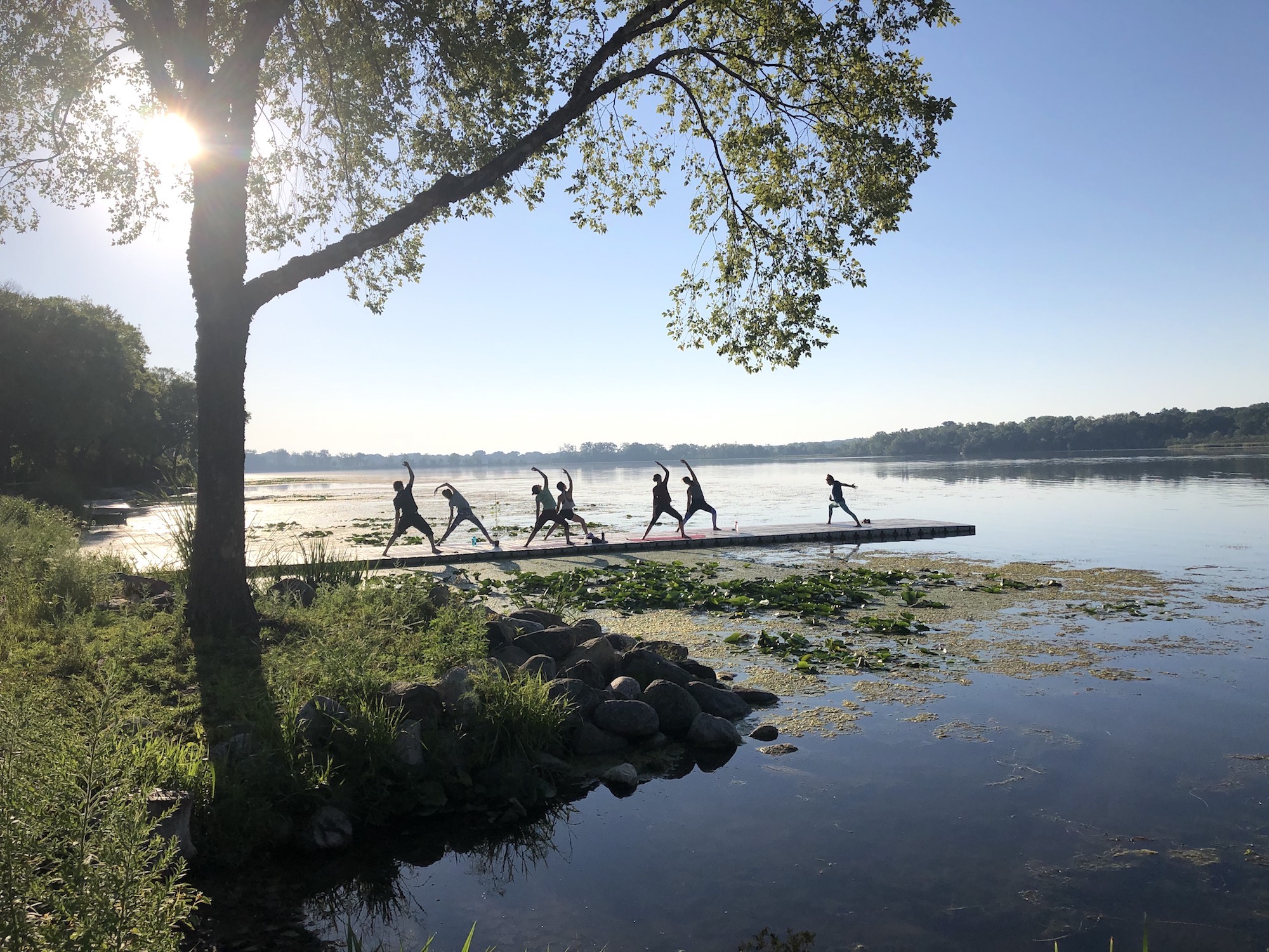 Yoga on a dock.