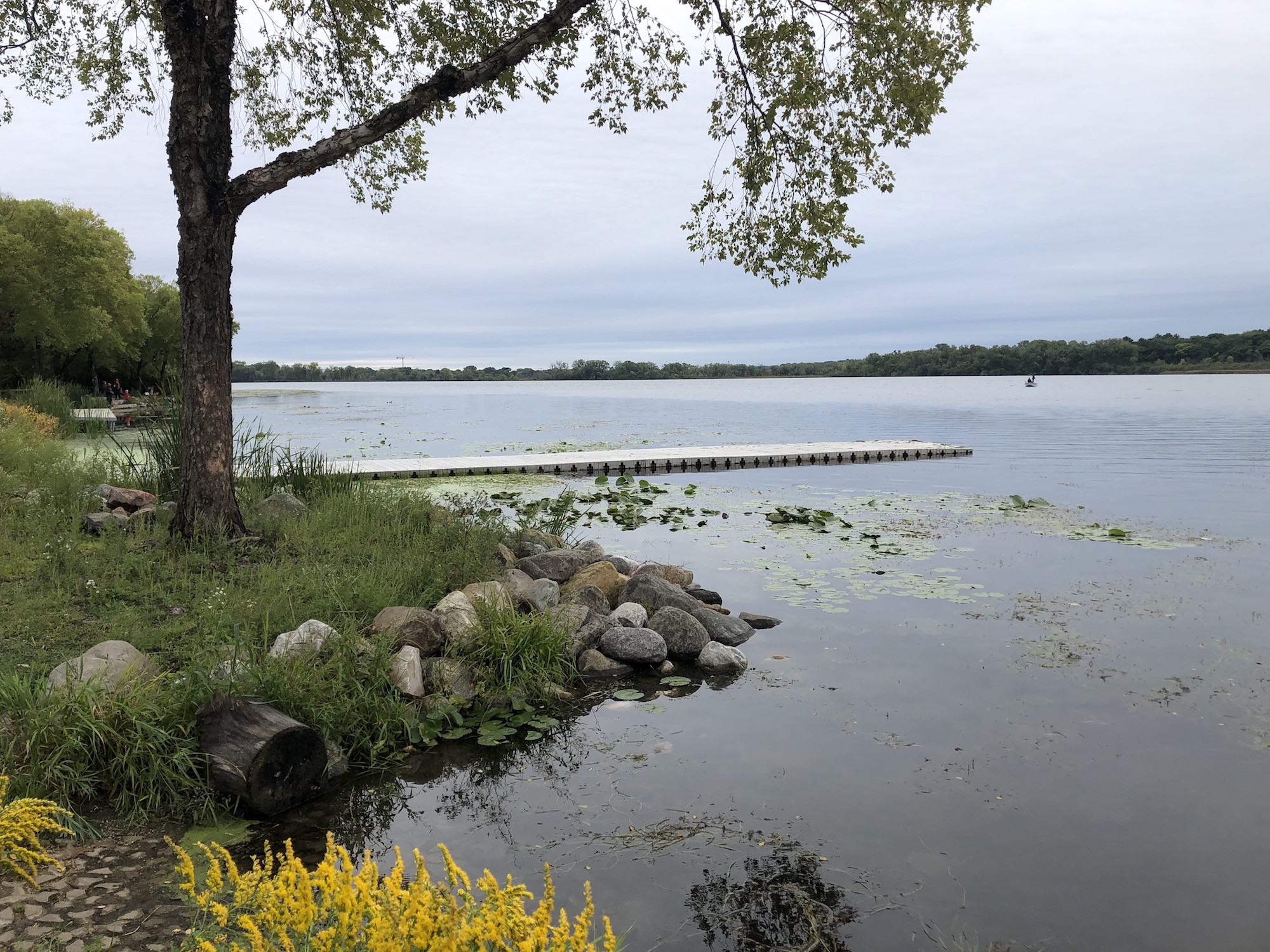 perched on retaining pond rock.