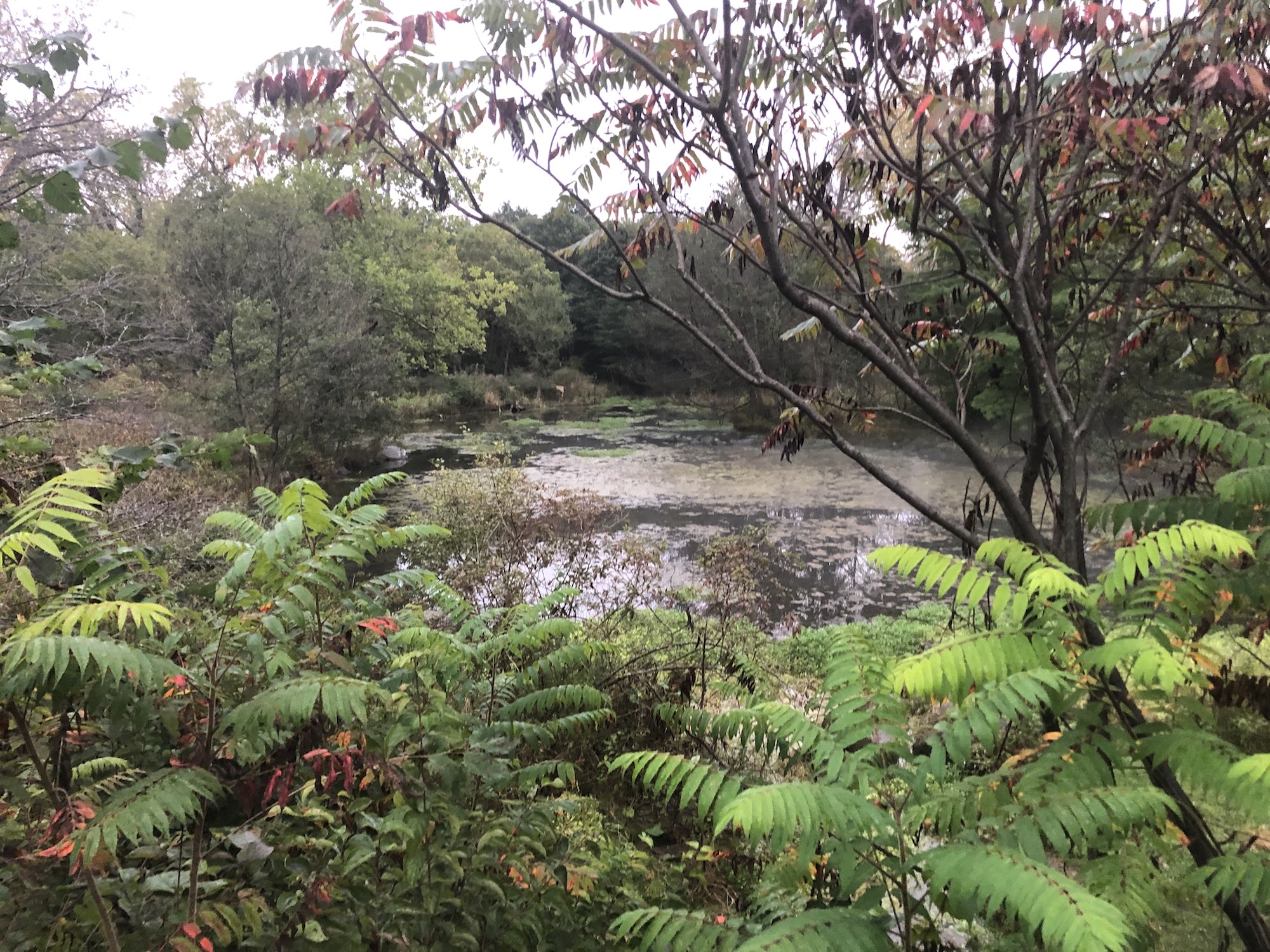 Above: Retaining pond on corner of Nakoma Road and Manitou Way on October 1, 2019 (72°).