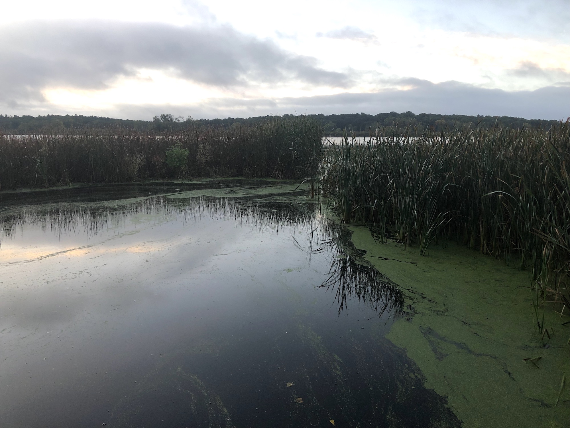 Above: Marion-Dunn Retaining Pond on October 3, 2019 (55°).