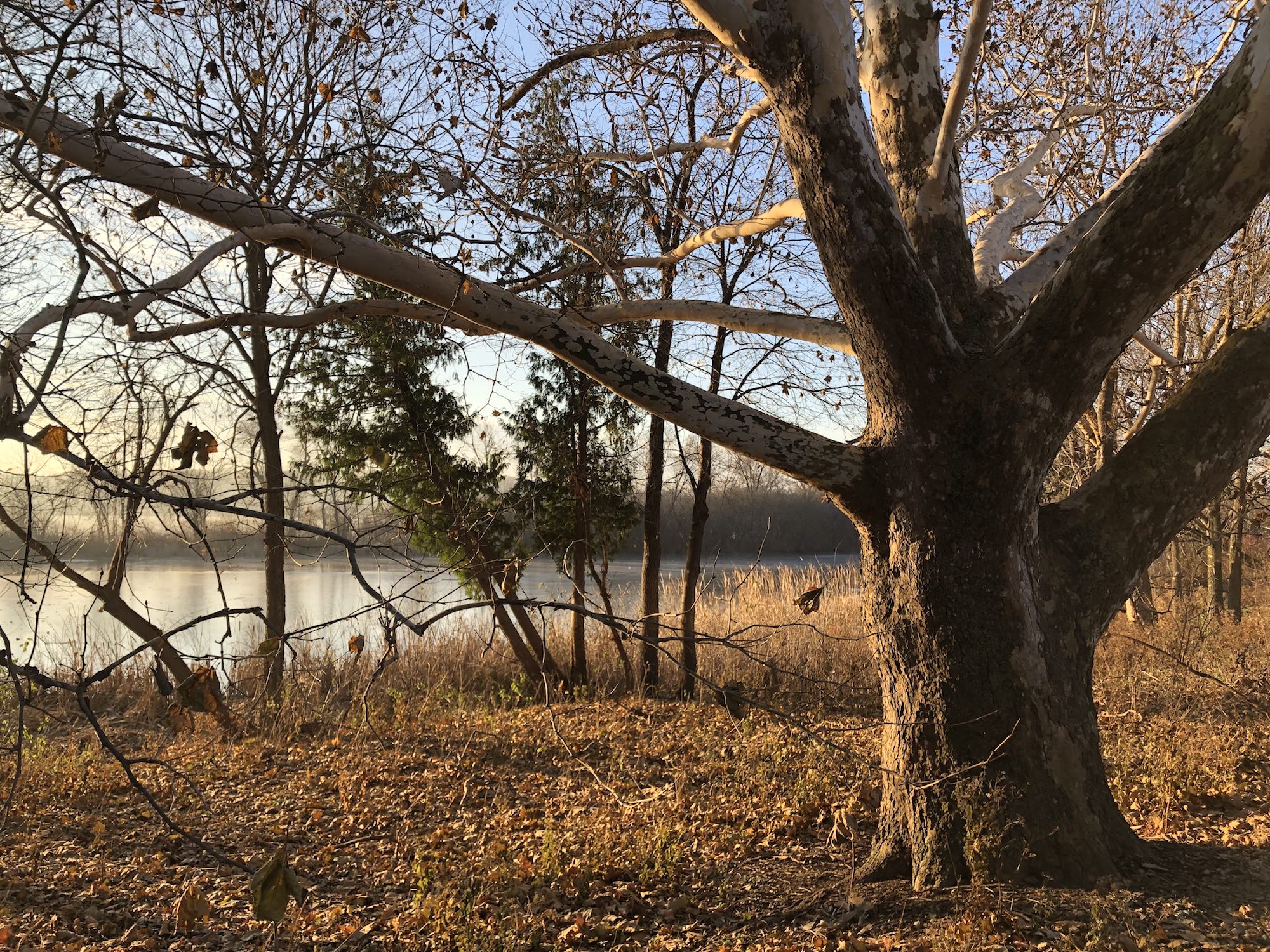 Above: Sycamore overlooking Ho-Nee-Um Pond from Arbor Drive.