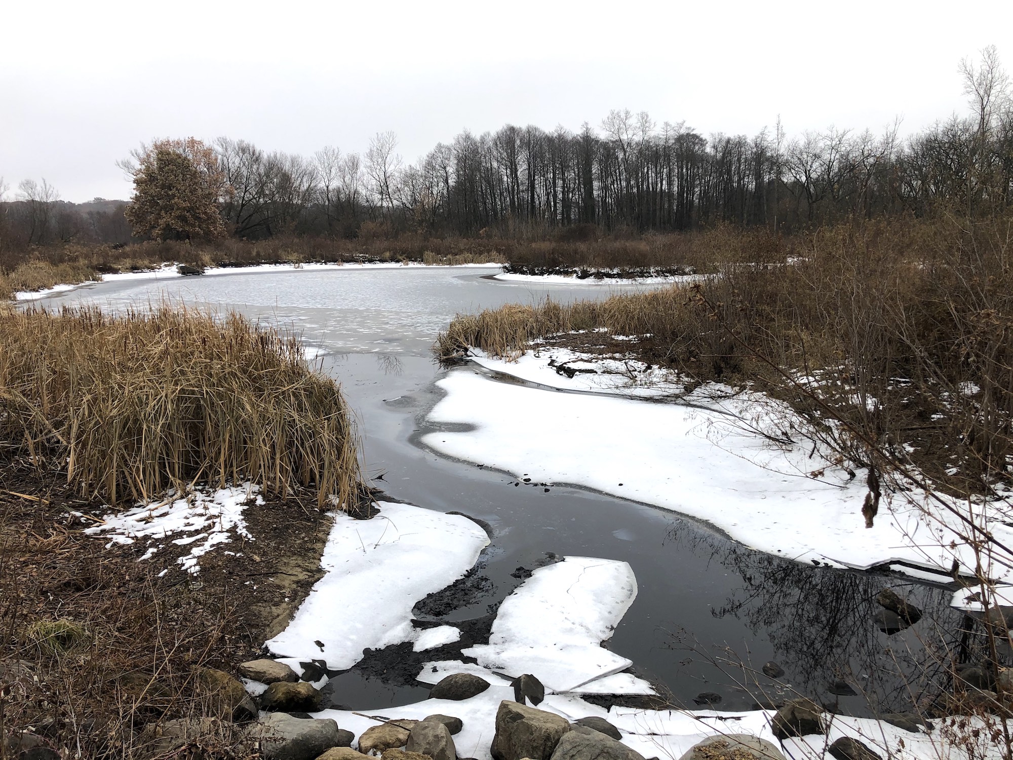 Above: Marion-Dunn Retaining Pond on November 19, 2019. (32°).