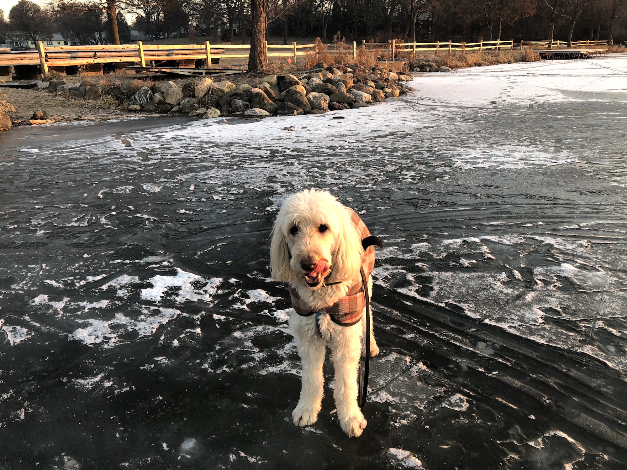 Above: Retaining pond on corner of Nakoma Road and Manitou Way on December 21, 2019 (29°).