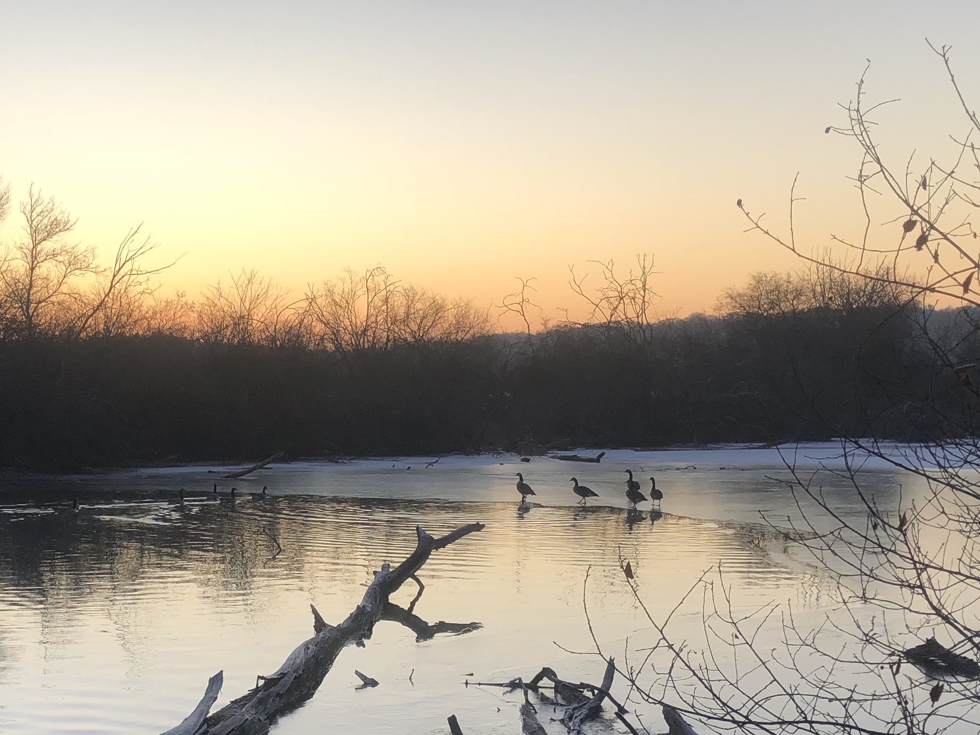 Above: Ho-Nee-Um Pond along boardwalk. (29°) Canada Geese.