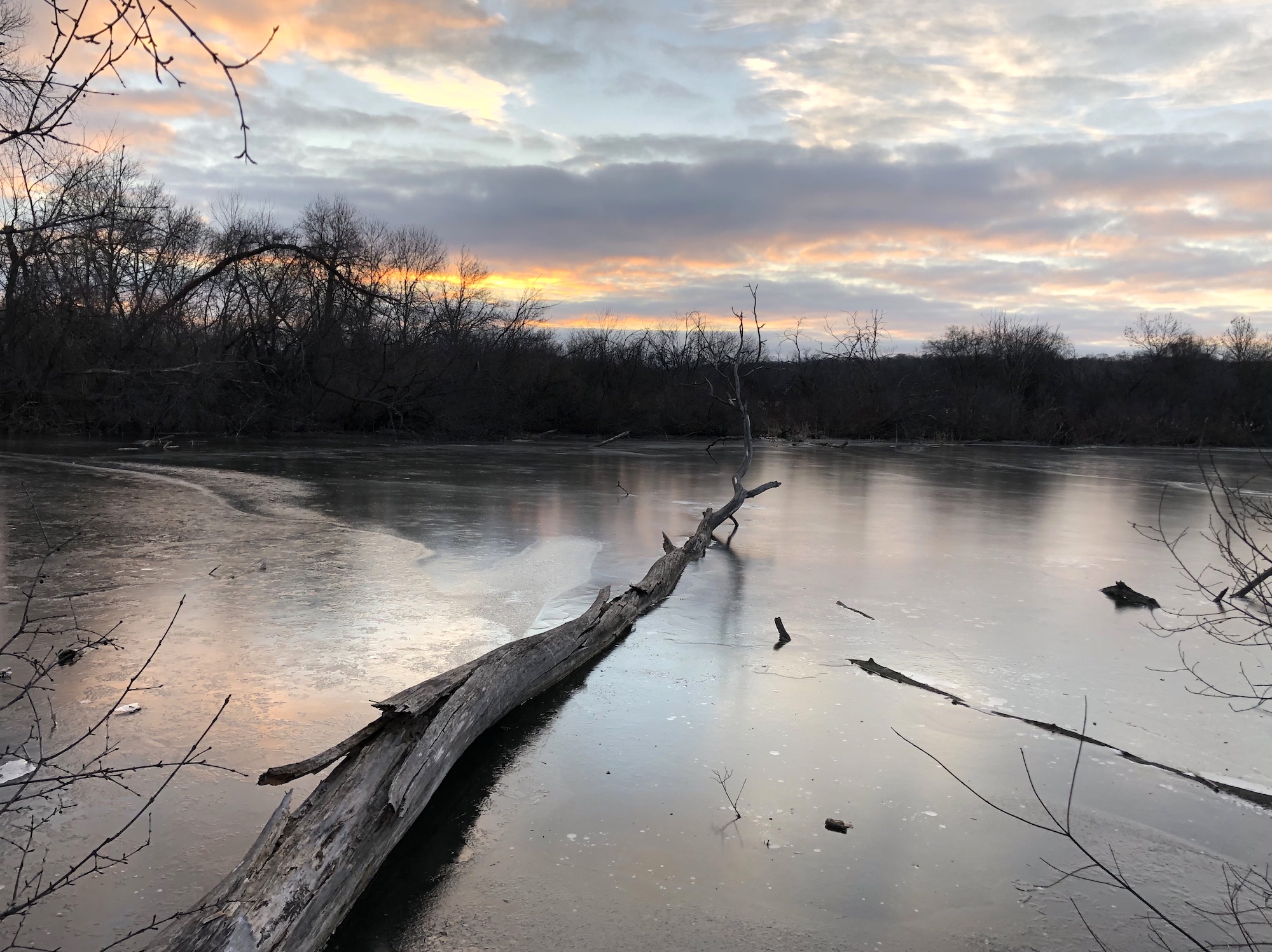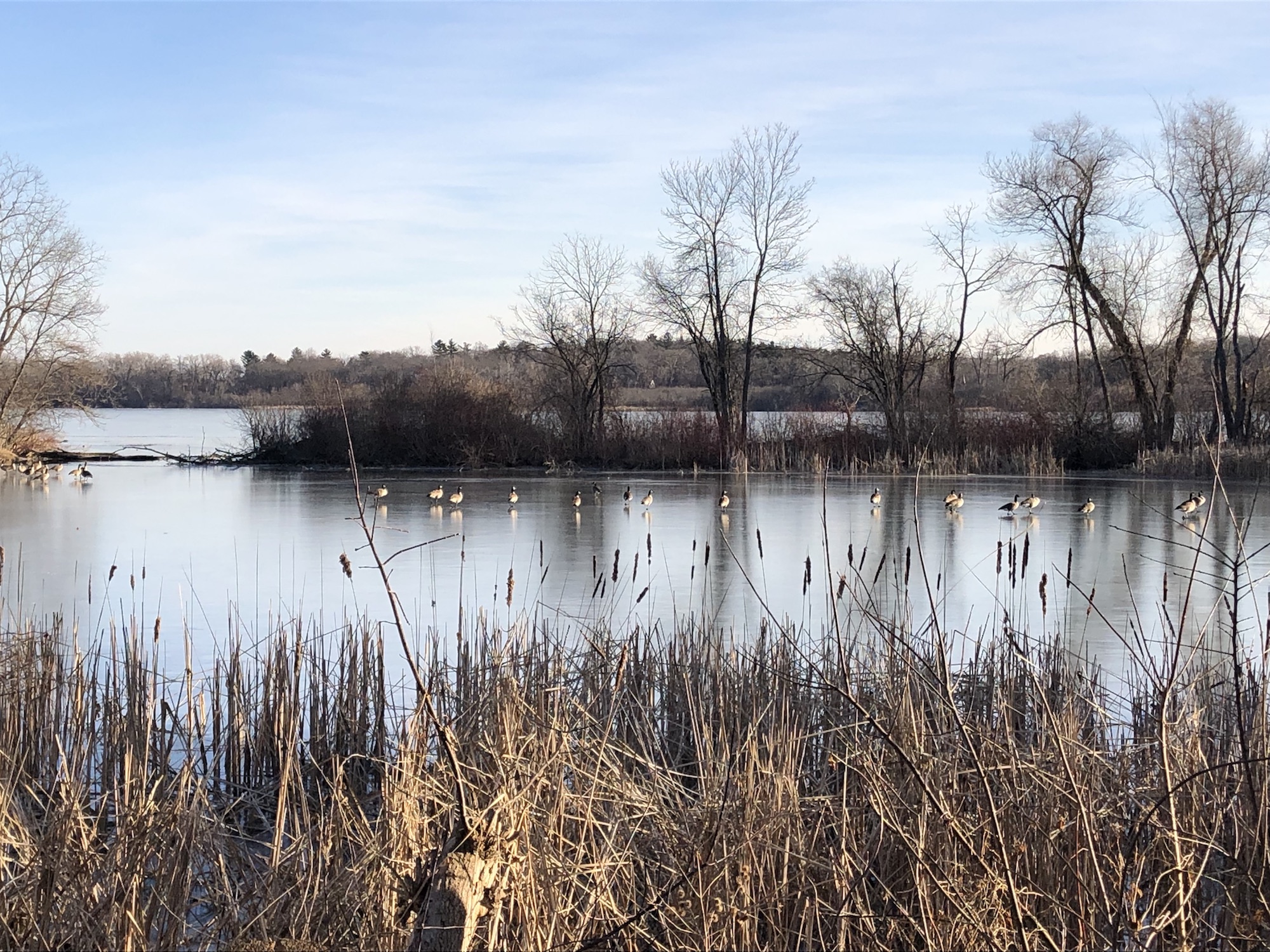 Above: Geese standing on ice in Ho-Nee-Um Pond later in the day after water froze (2:50 pm).