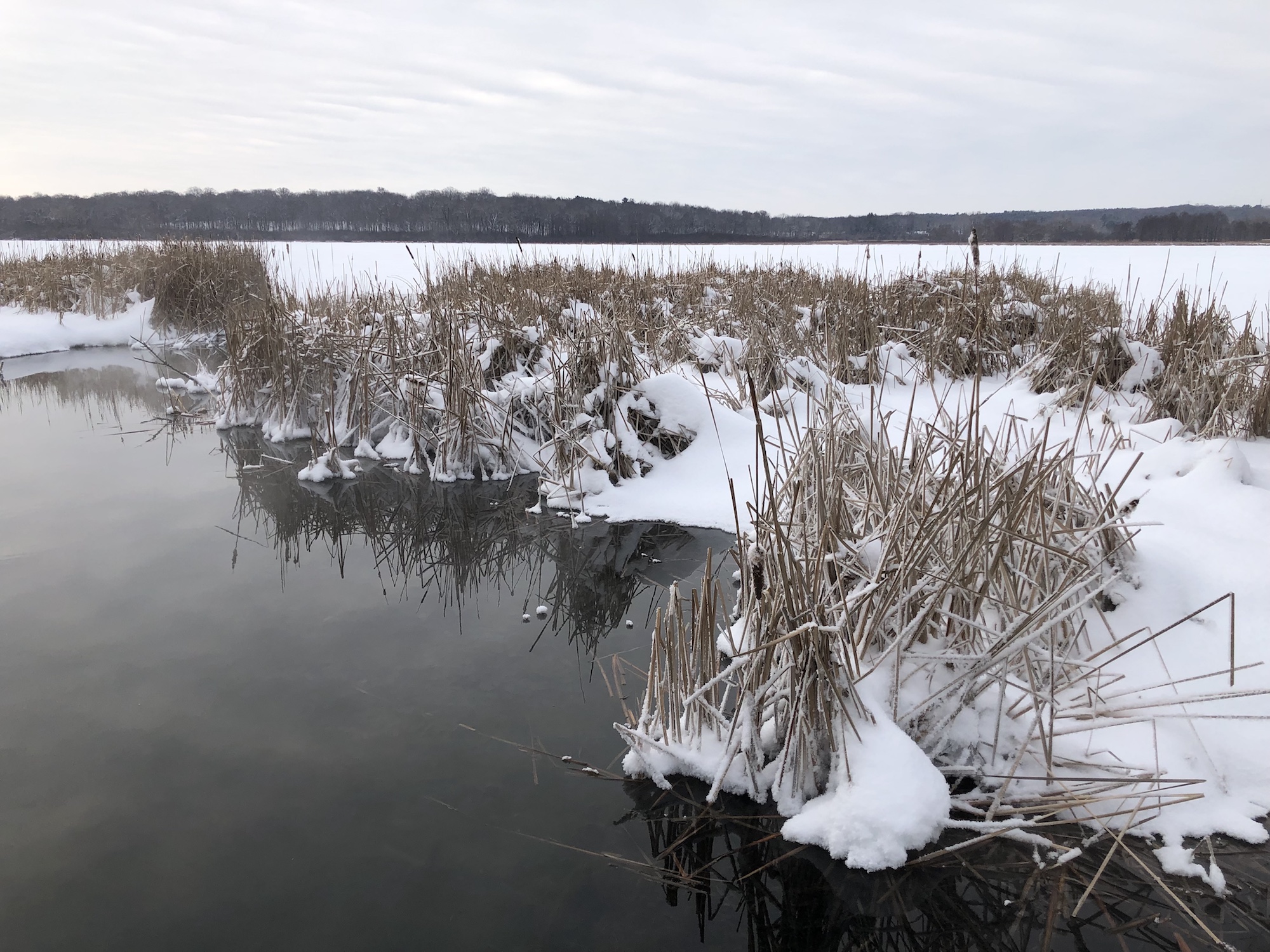 Above: Lake Wingra cattails. Where storm sewer that flows under Pickford Street and east of Ho-Nee-Um Pond outflows into Lake Wingra.