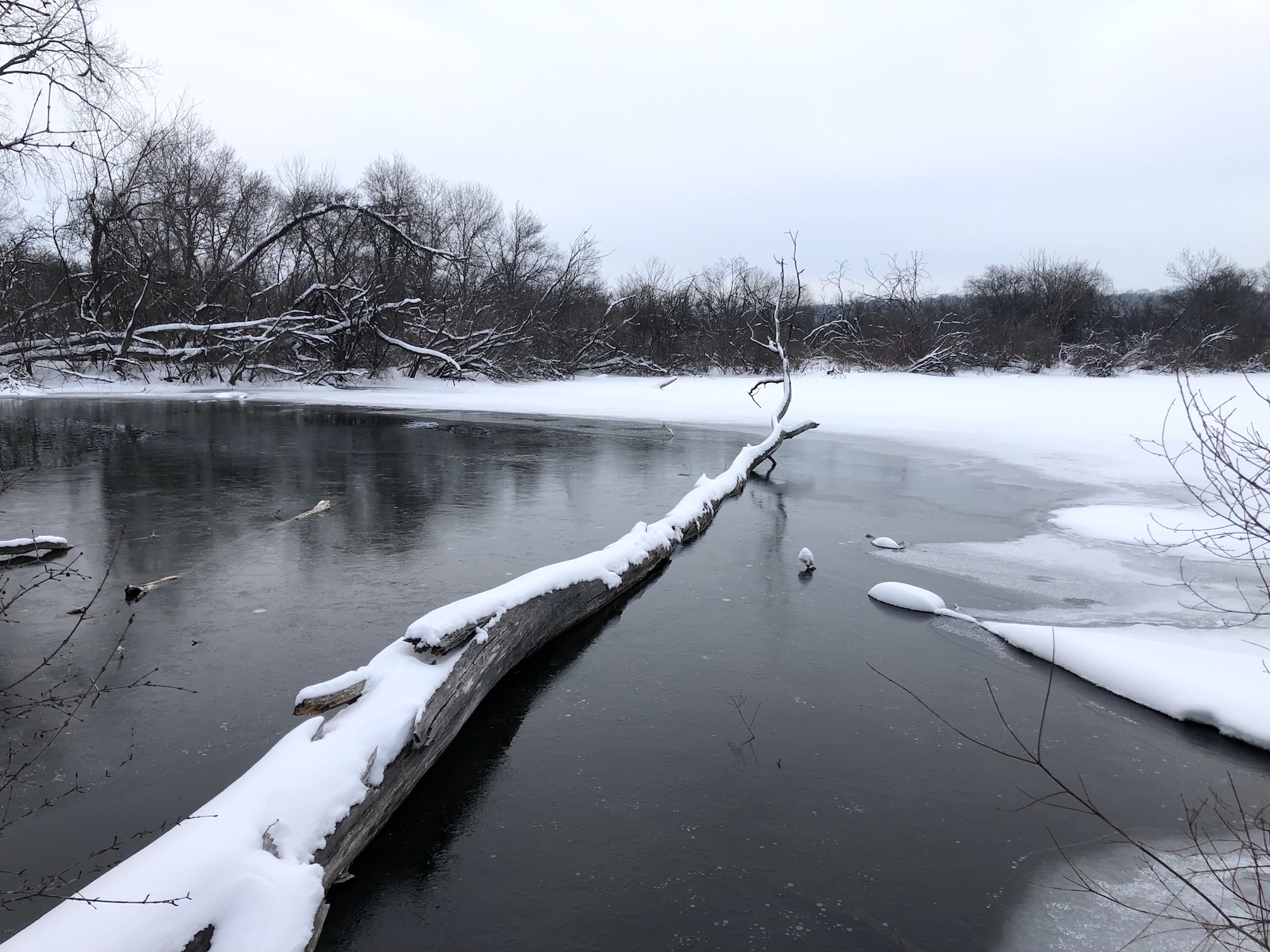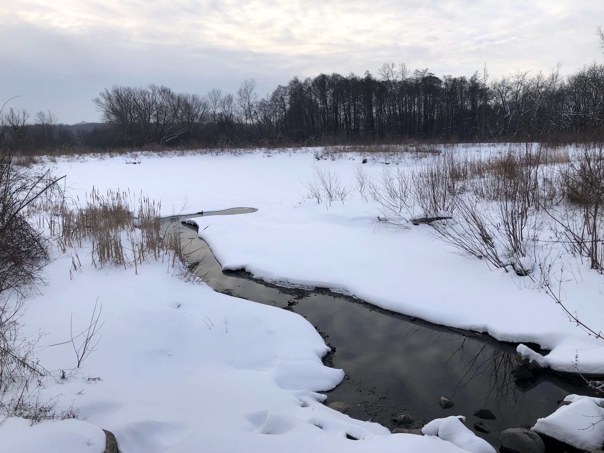 Above: Ho-Nee-Um Pond. Note: snowshoe tracks by forked tree.