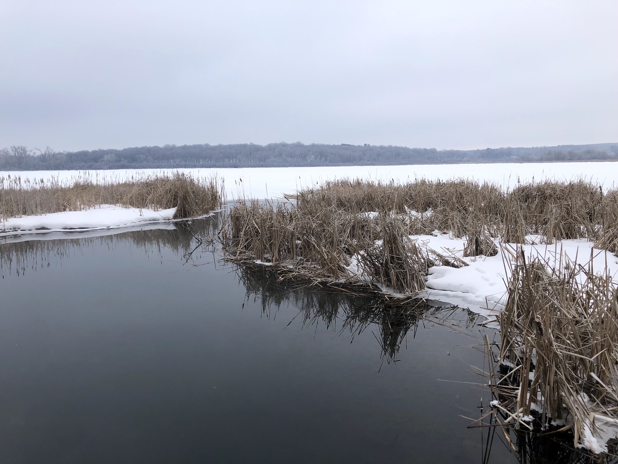 Above: Marion-Dunn Retaining Pond on February 27, 2019 (12°).