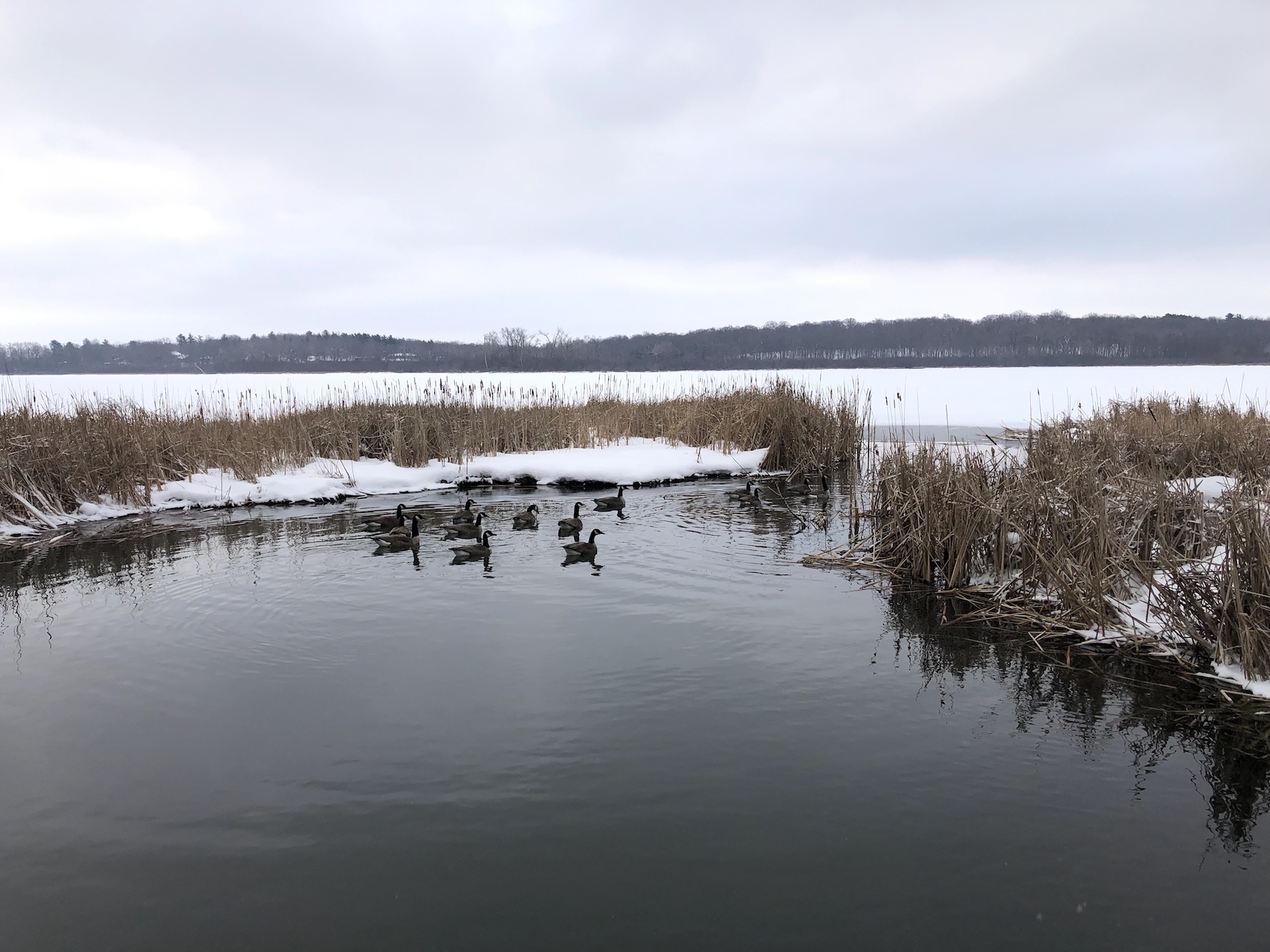 Above: Lake Wingra cattails. Canada Geese.