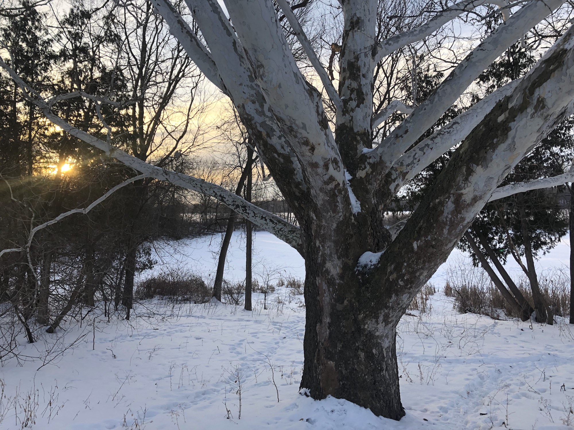 Below: Sycamore tree between Ho-Nee-Um Pond and Arbor Drive on northwest shore of Lake Wingra.