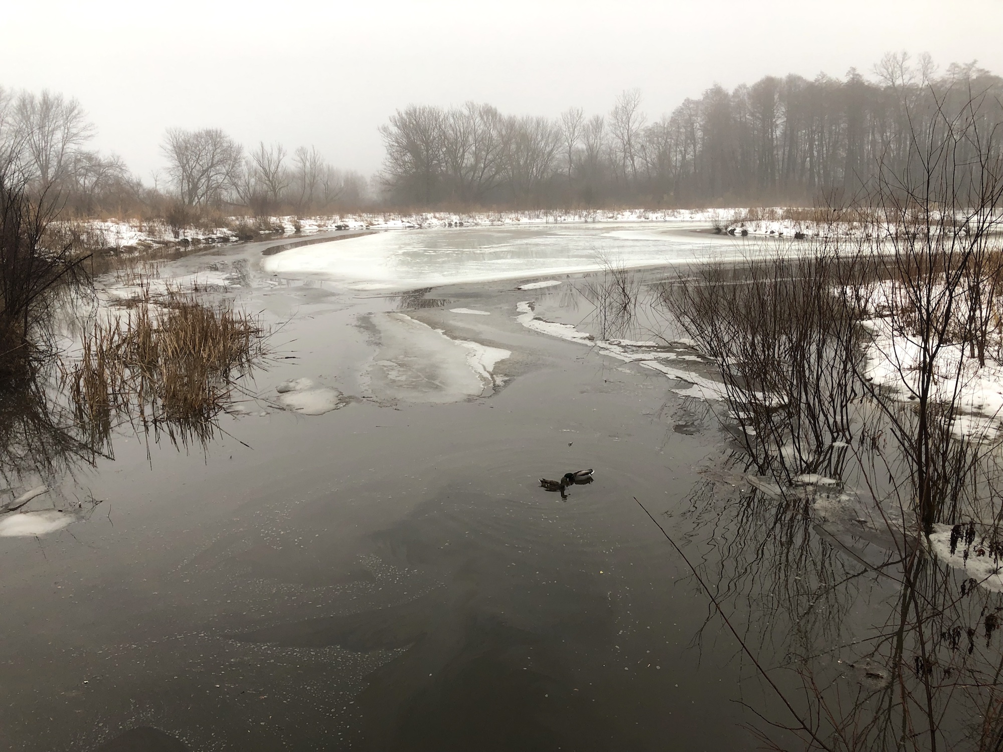 Above: Marion-Dunn Retaining Pond on March 13, 2019 (38°).