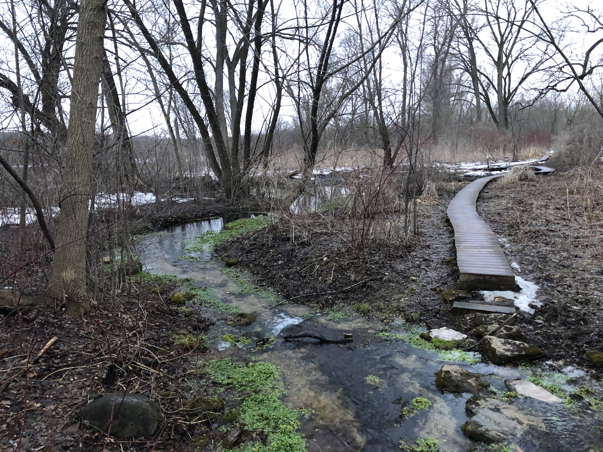 Note: Stirred a murder of crows just before I got to the cattails. Sighted two Sandhill Cranes in Lake Wingra cattails. Two muskrats perched on the edge of the receeding ice by cattails and two more muskrat on receeding ice edge in Ho-Nee-Um Pond (They appear to be eatting). Flock of turkeys by Duck Pond.