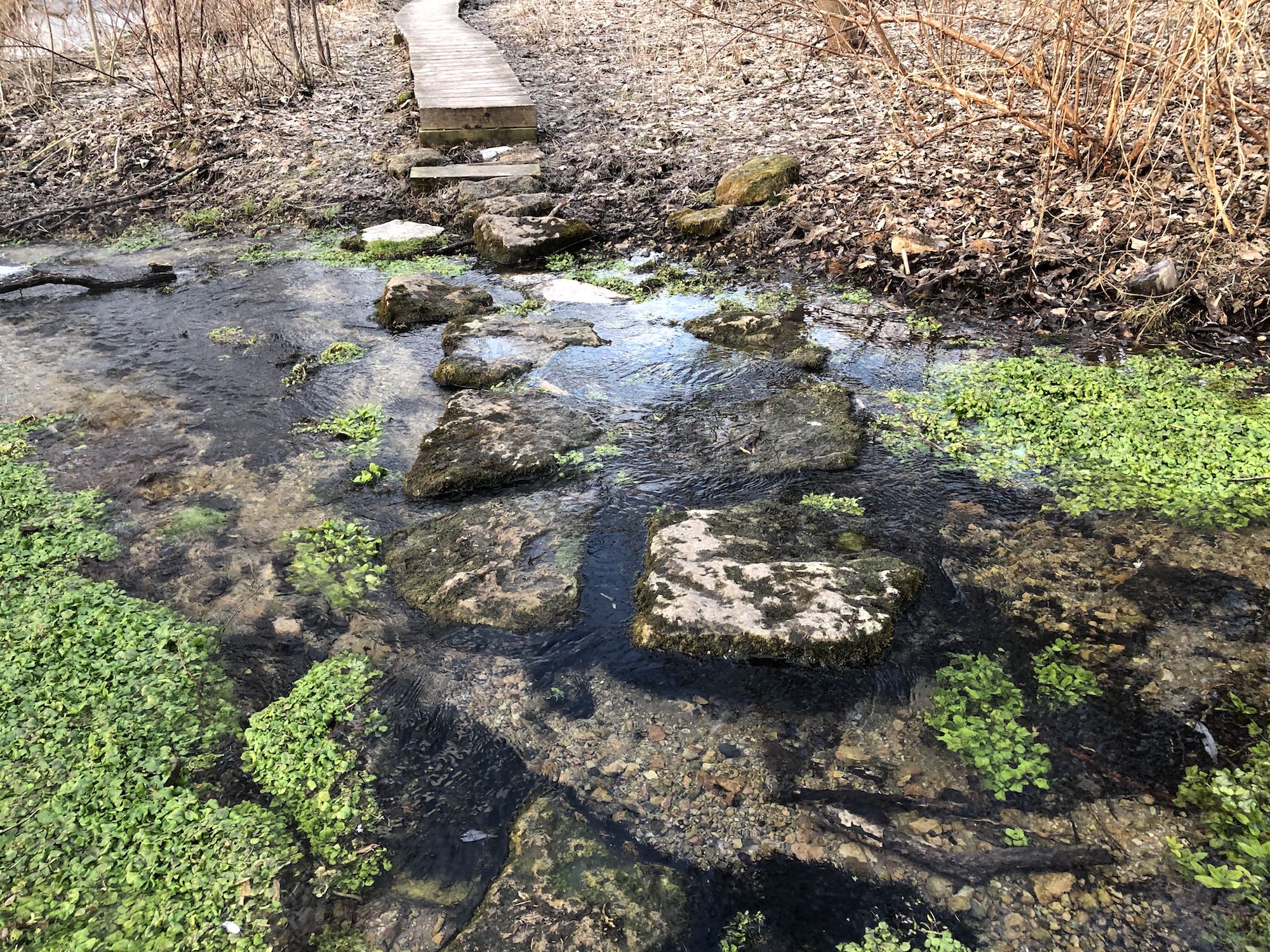 Above: Retaining pond on corner of Nakoma Road and Manitou Way on March 18, 2019 (27°).