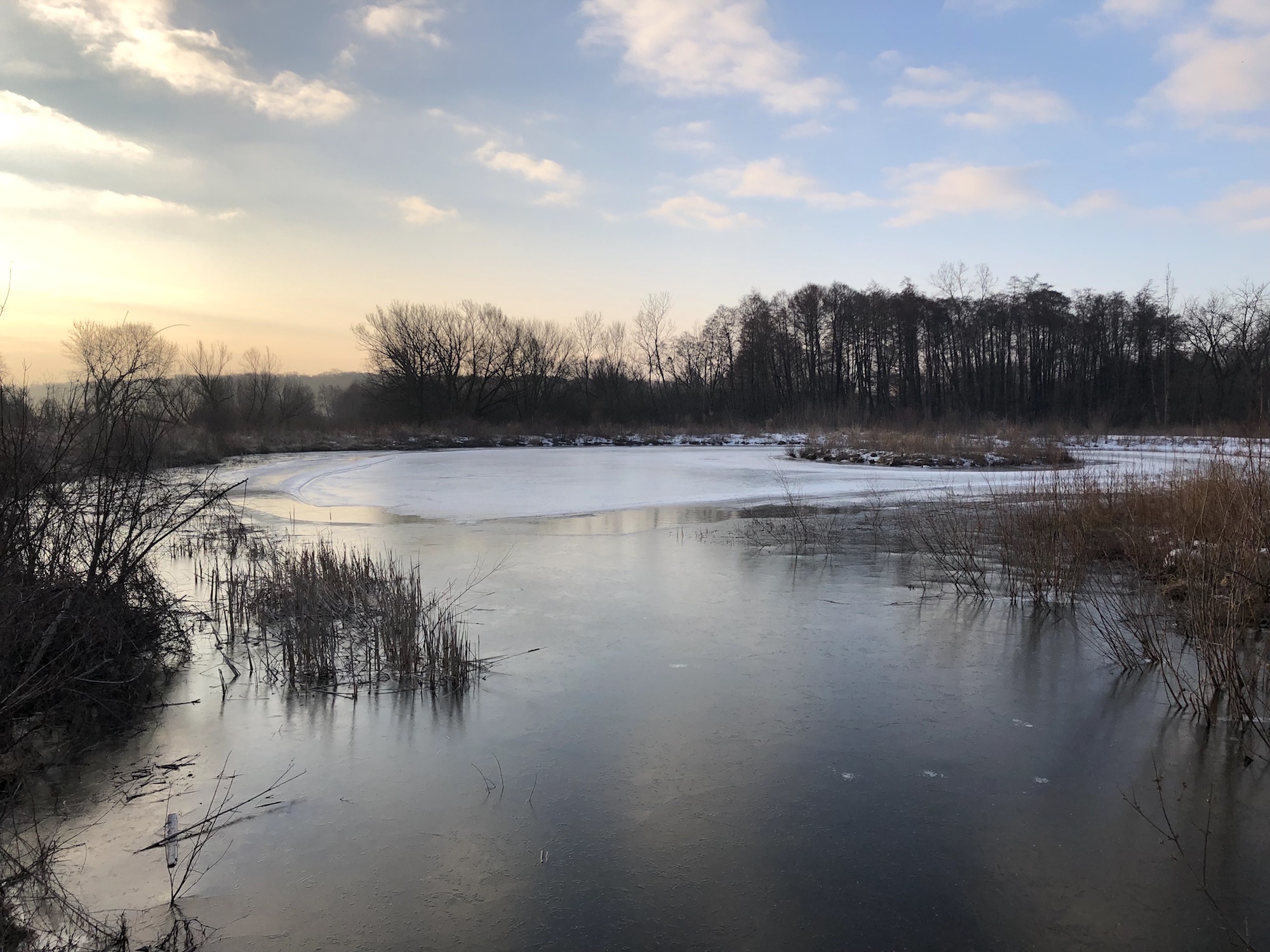 Above: Marion-Dunn Retaining Pond on March 18, 2019 (27°).