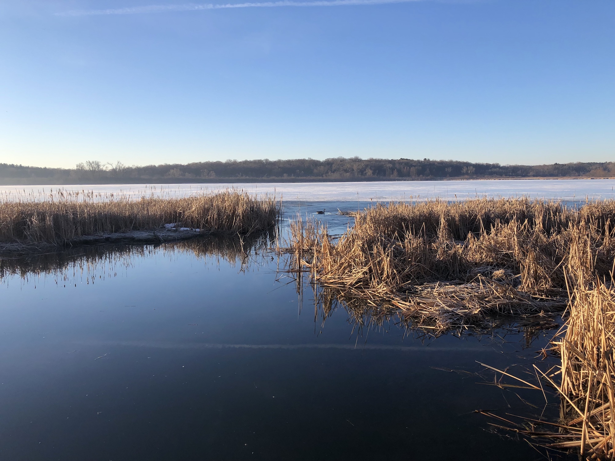 Above: Lake Wingra cattails. Redwing Blackbirds. Canada Geese.