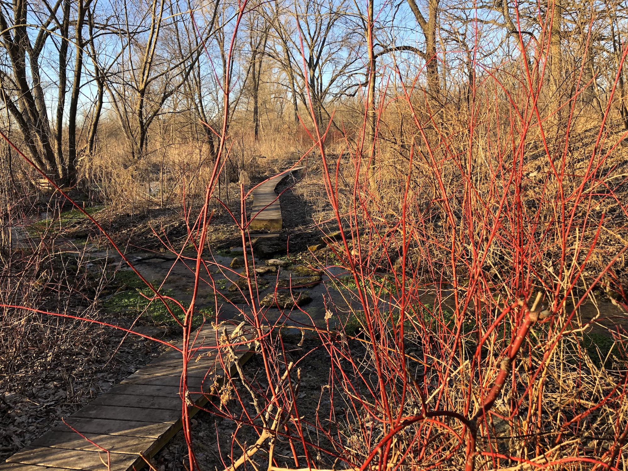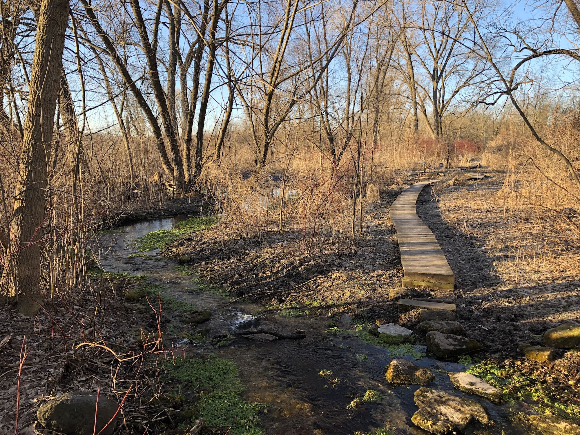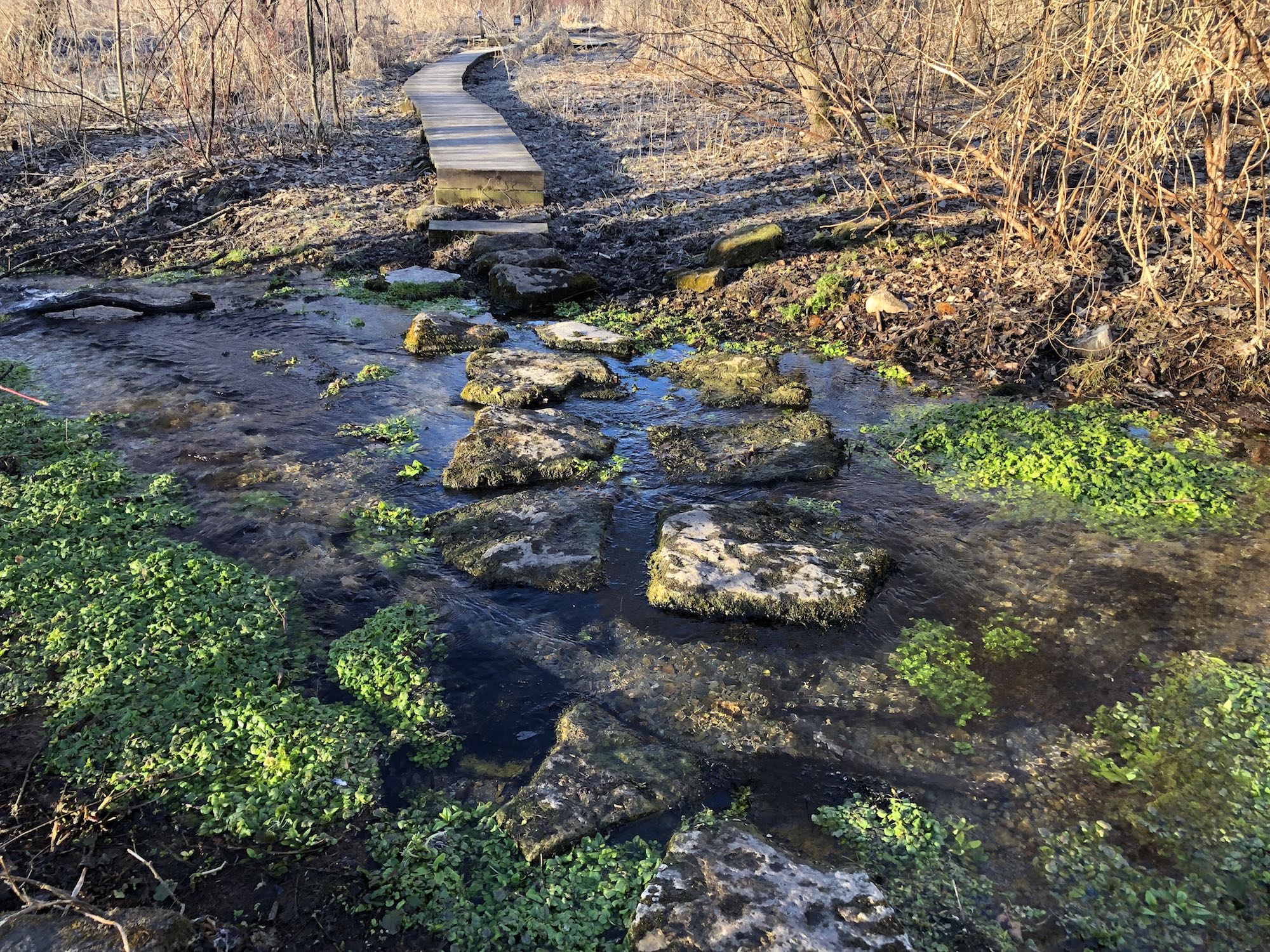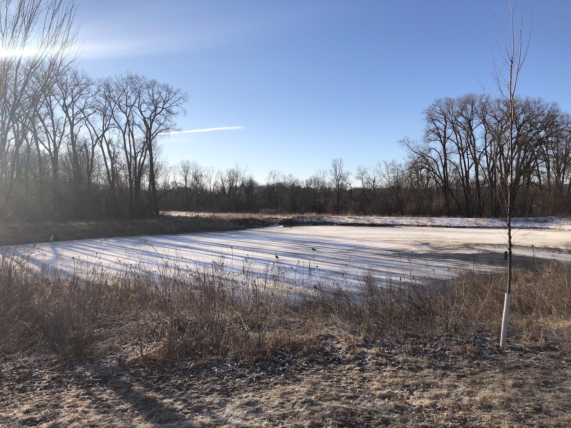Above: Retaining pond on corner of Nakoma Road and Manitou Way on March 19, 2019 (30°).