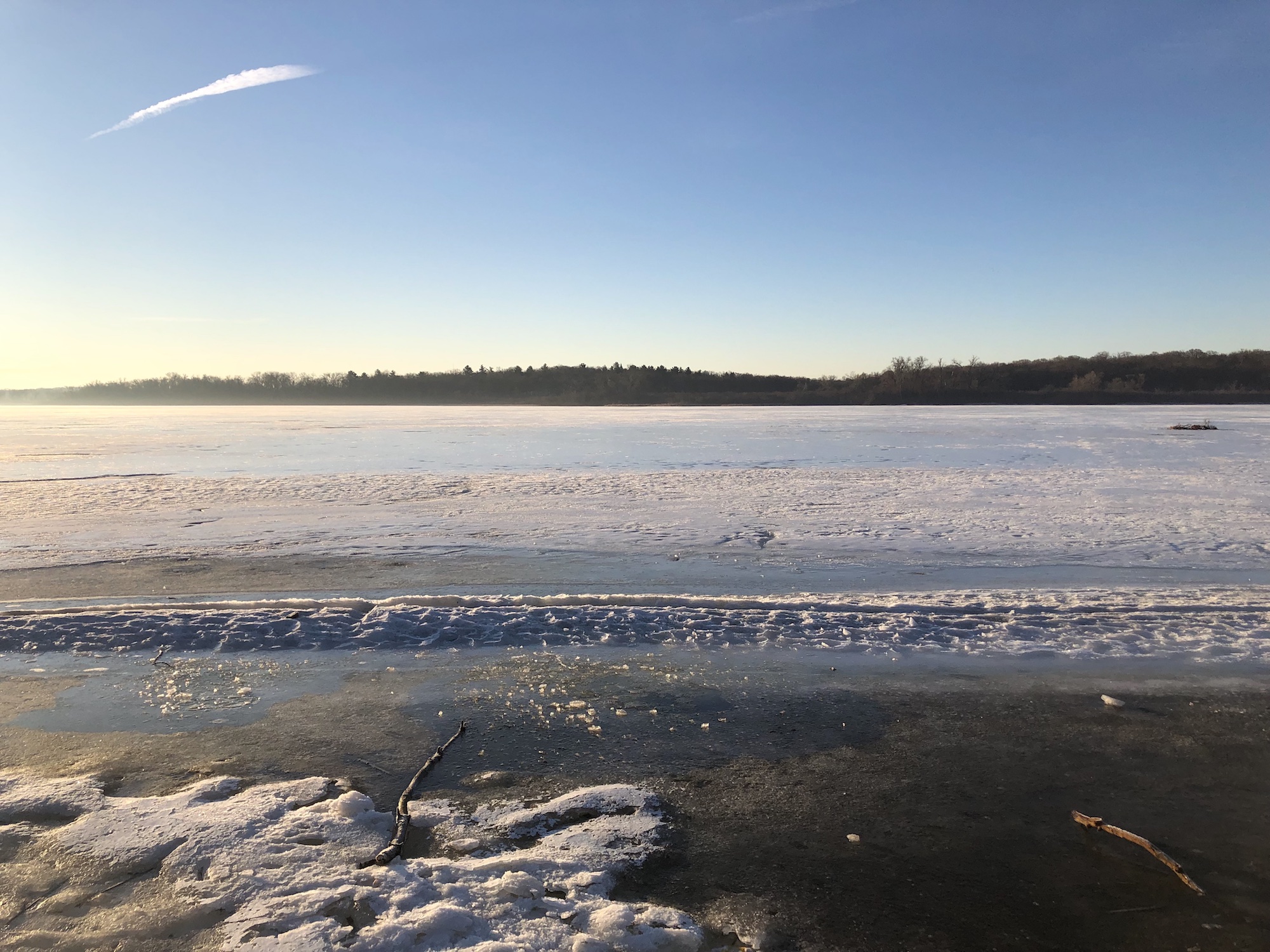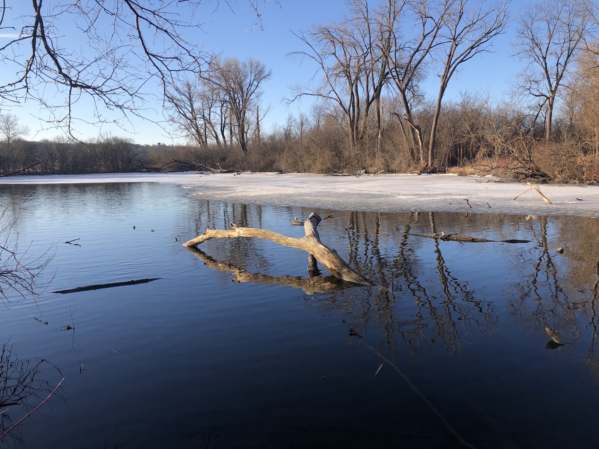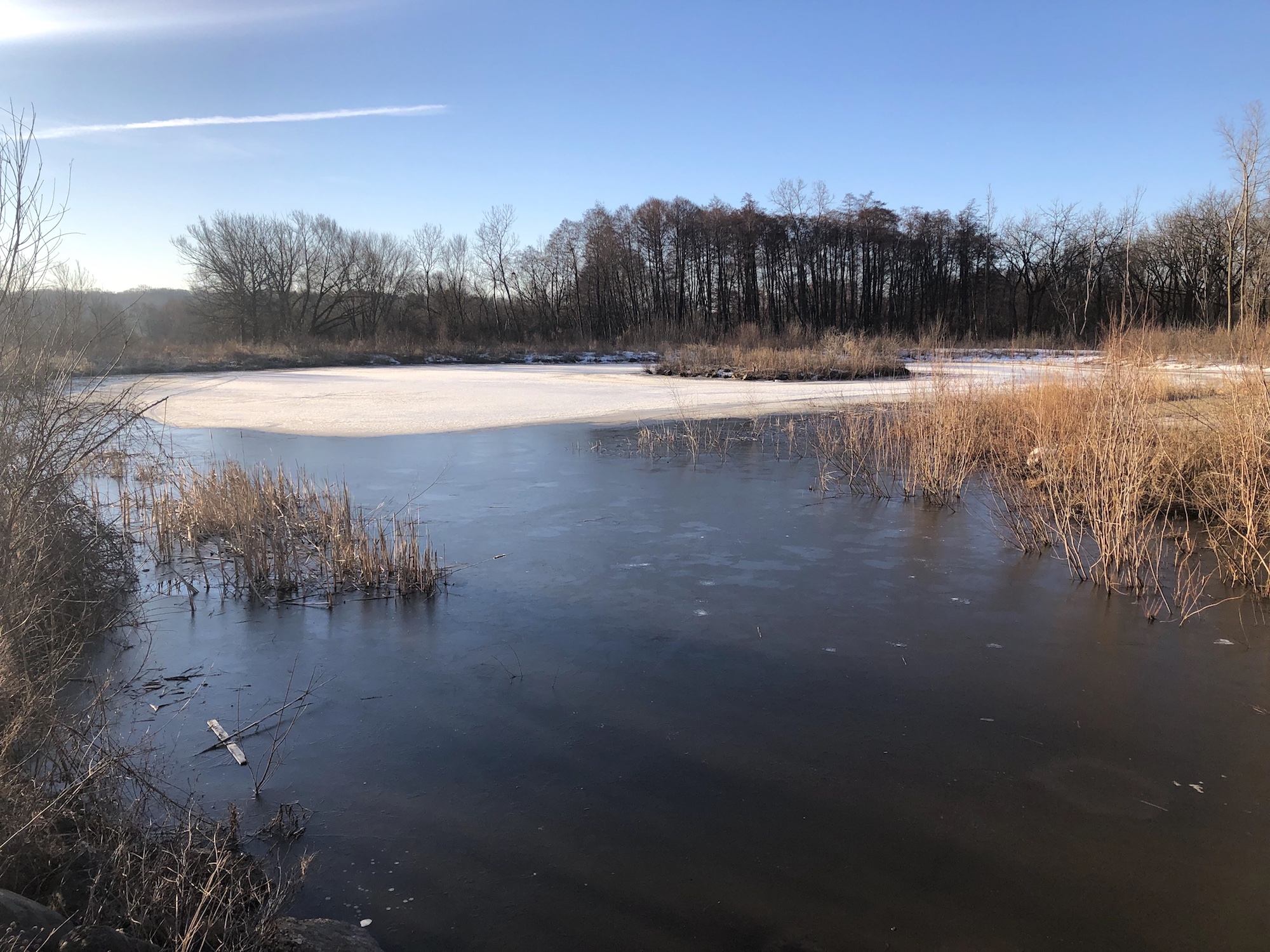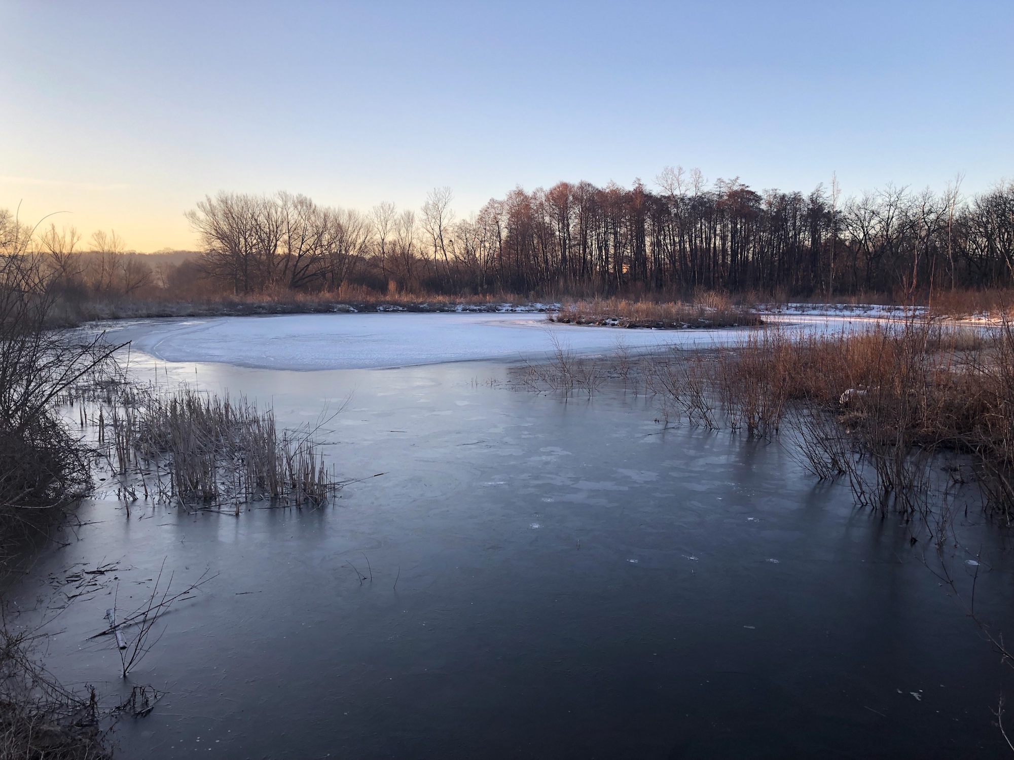 Above: Marion-Dunn Retaining Pond on March 19, 2019 (30°).