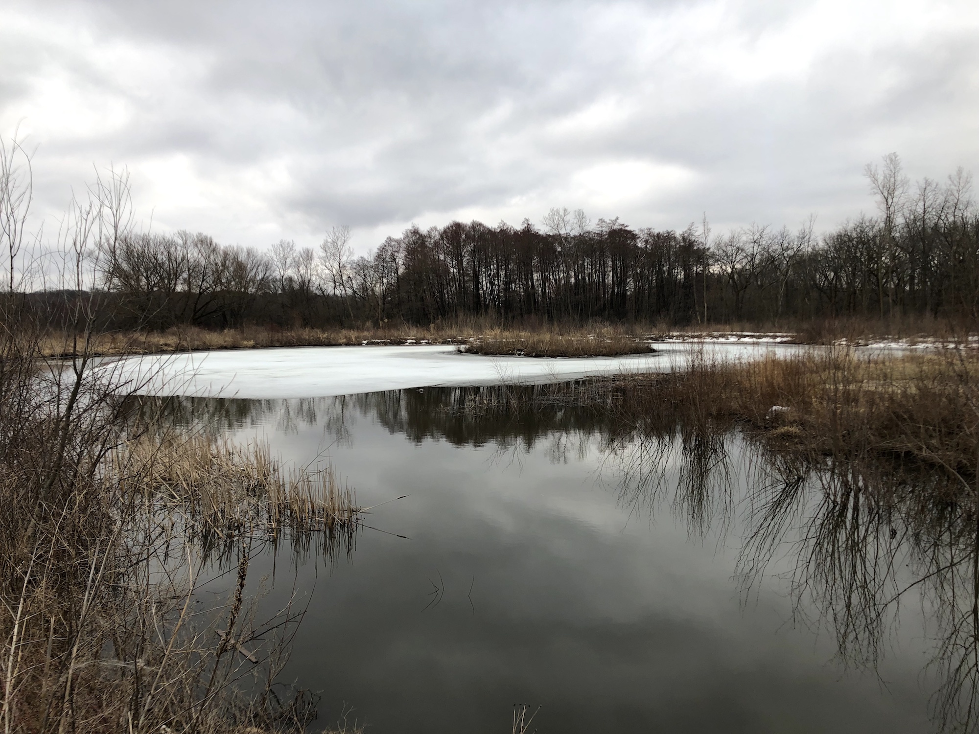 Above: Marion-Dunn Retaining Pond on March 21, 2019 (35°).