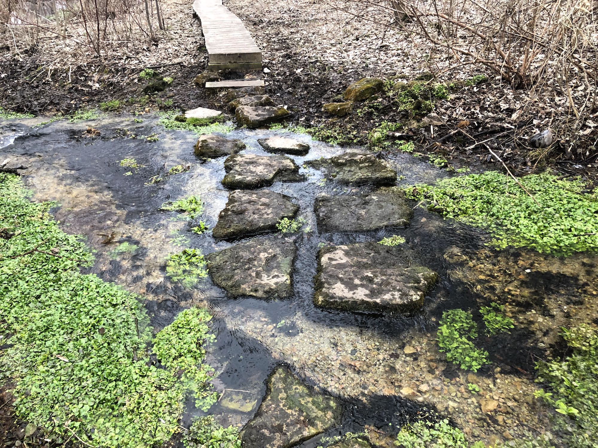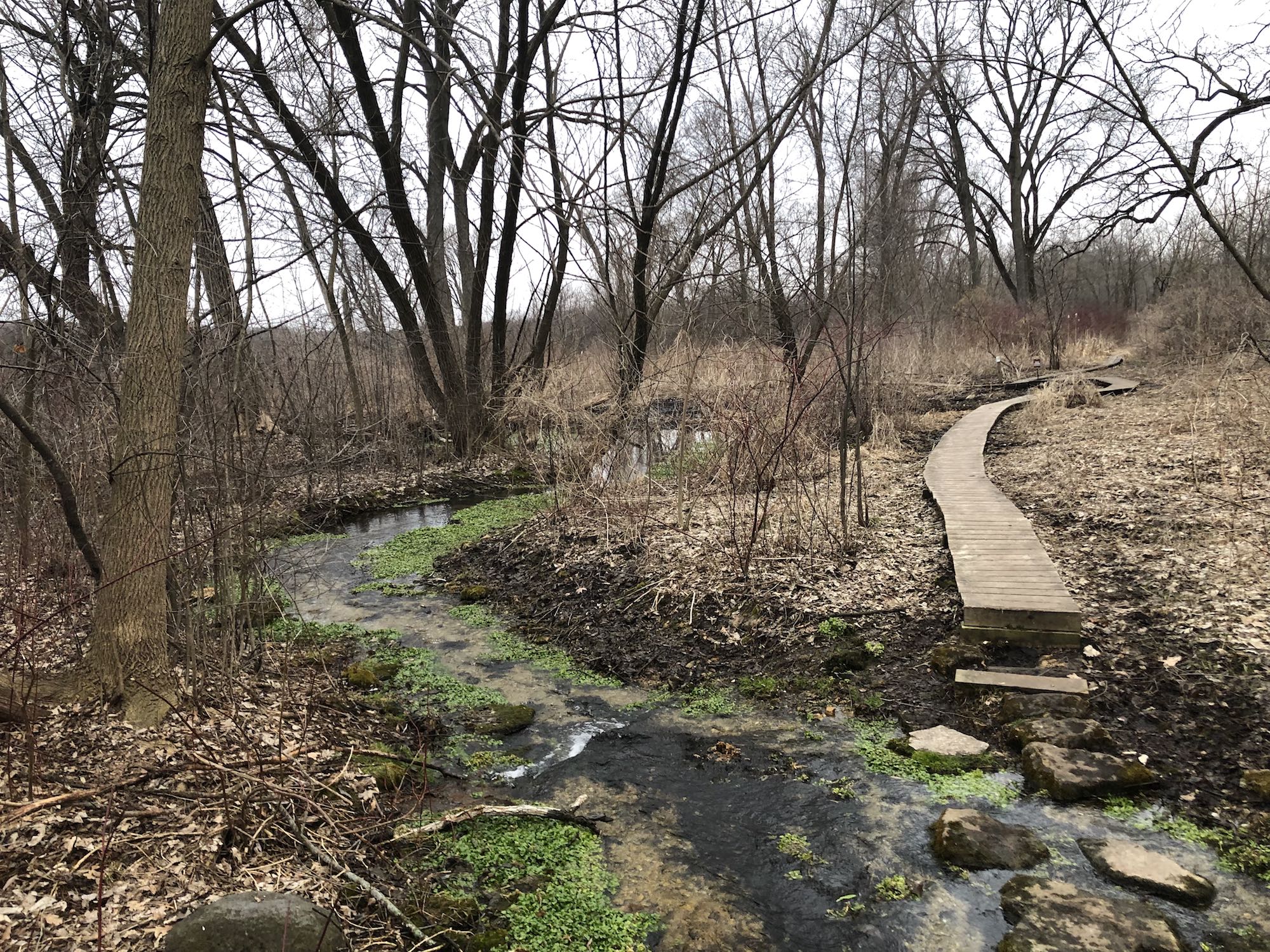 Above: Retaining pond on corner of Nakoma Road and Manitou Way on March 24, 2019 (40°).
