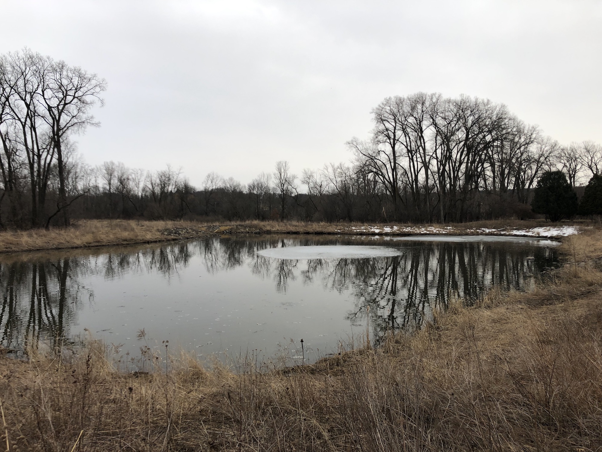 Above: Marion-Dunn Retaining Pond on March 24, 2019 (40°).