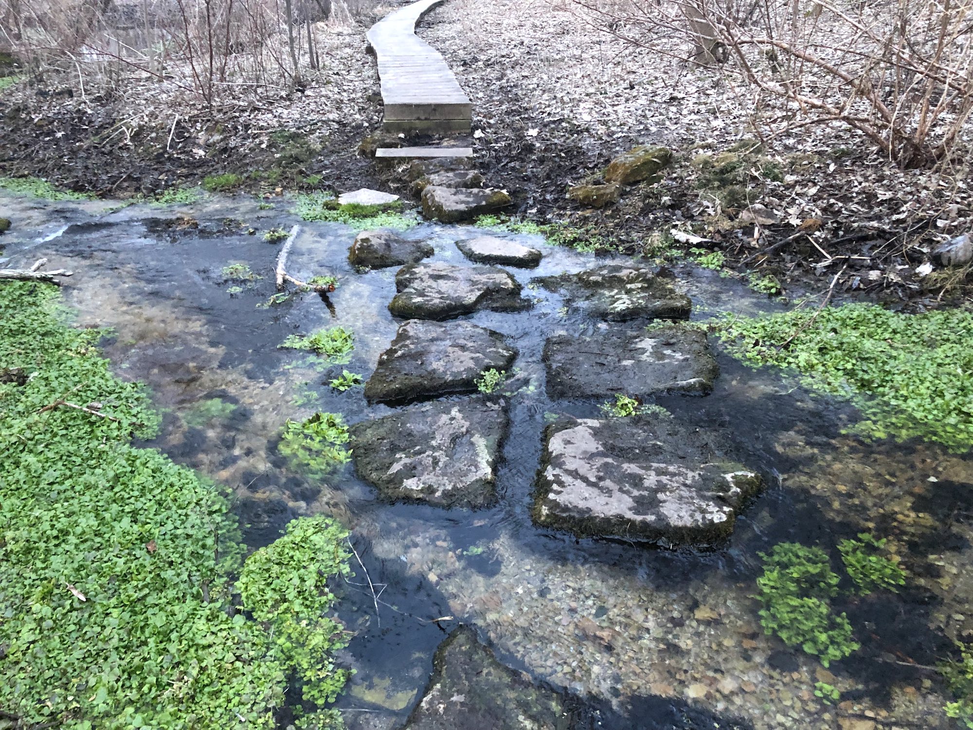 Above: Retaining pond on corner of Nakoma Road and Manitou Way on March 27, 2019 (27°).