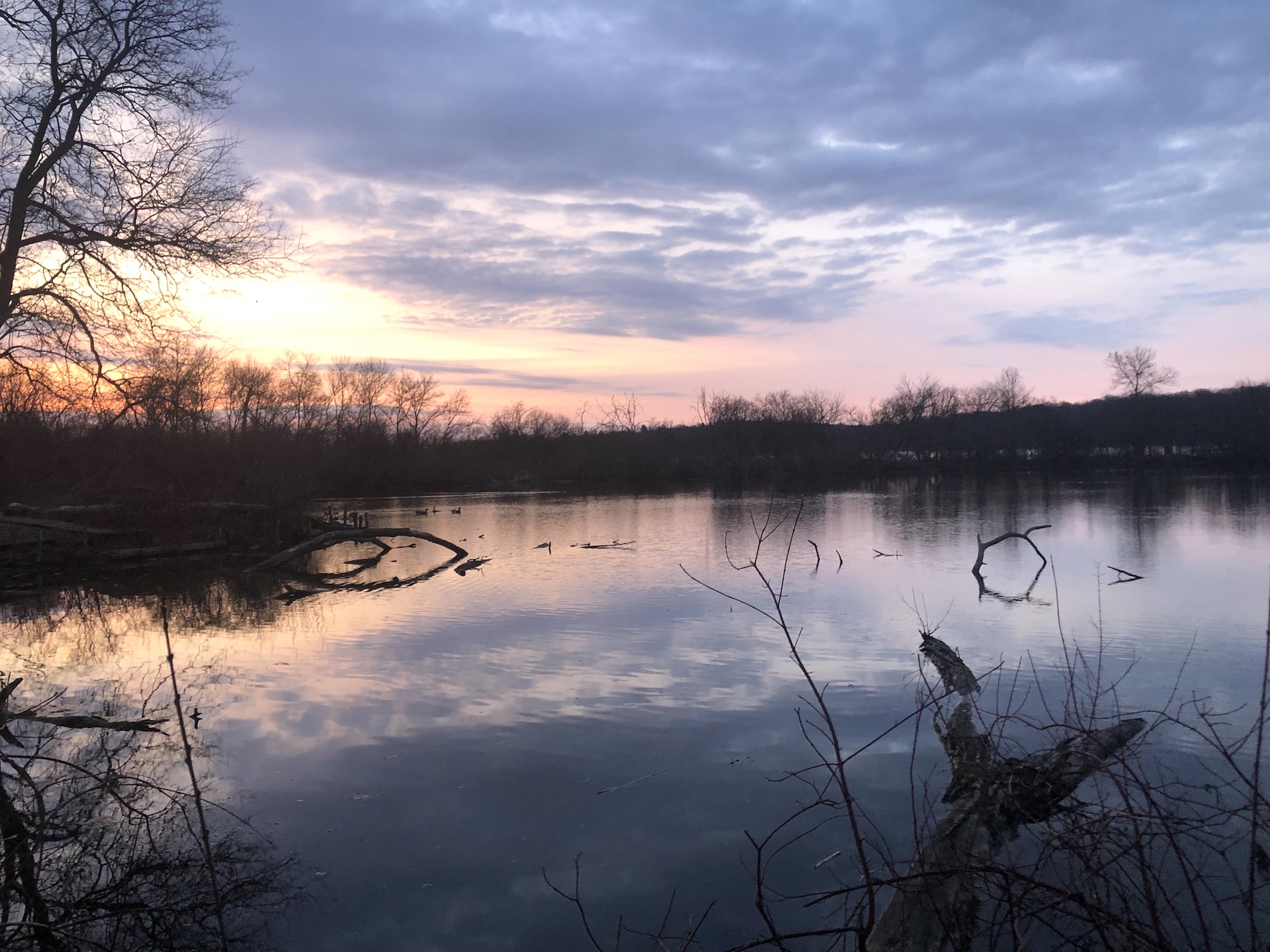 Below: Lake Wingra looking east at sunrise. Muskrat on receeding ice.