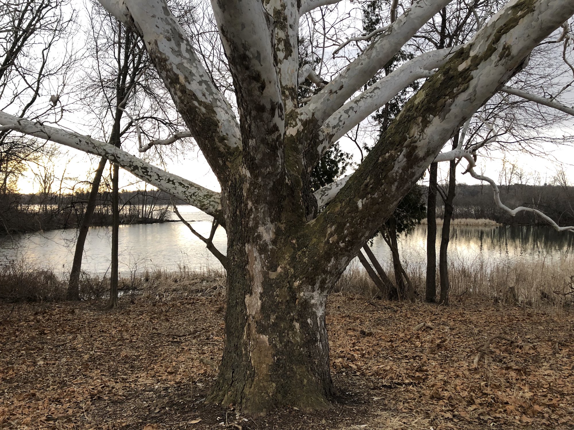 Below: Sycamore overlooking Ho-Nee-Um Pond in afternoon - 12:45 PM. (50°)