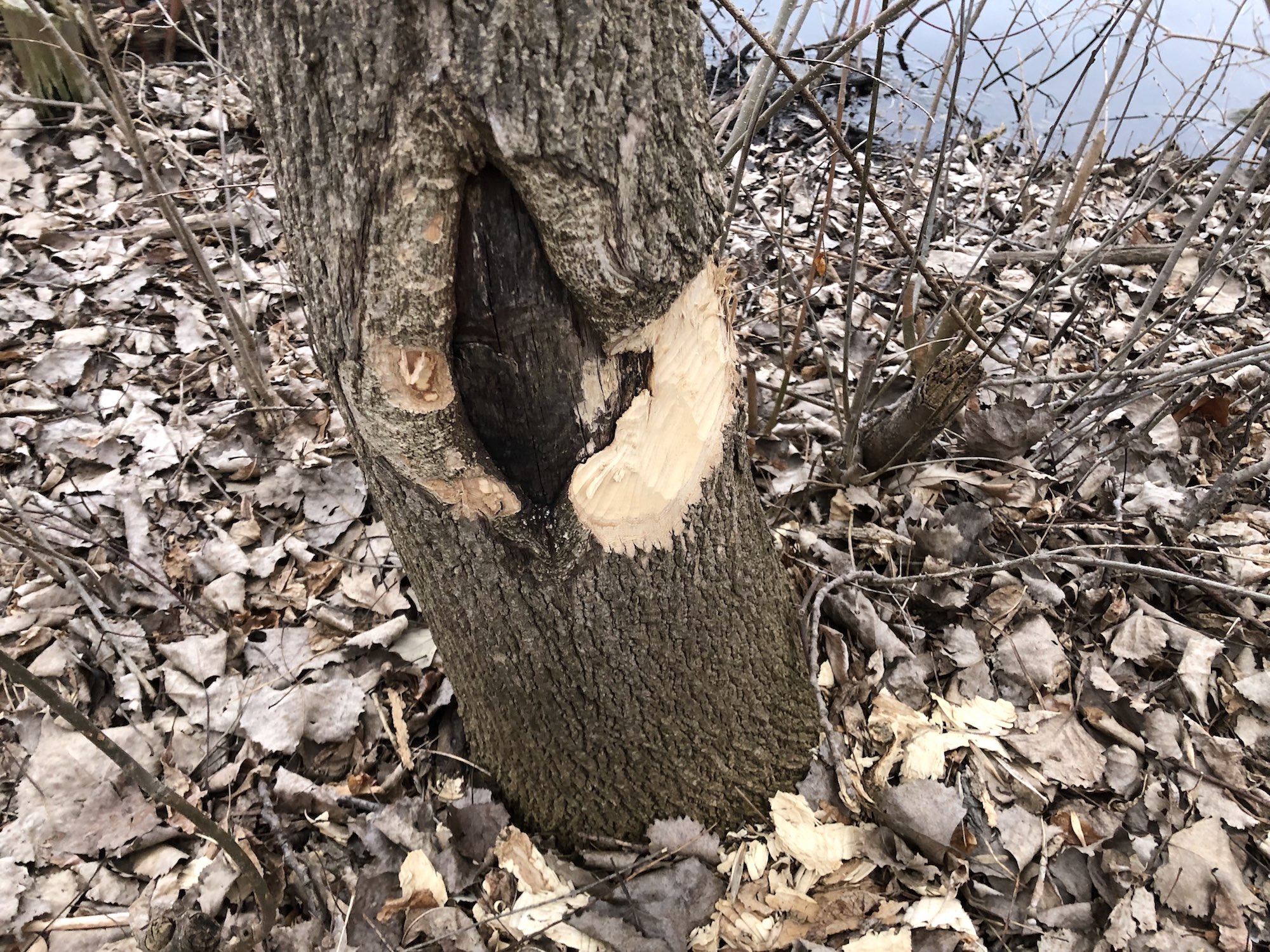 Below: Tree by Ho-Nee-Um Pond bring carved by beaver.