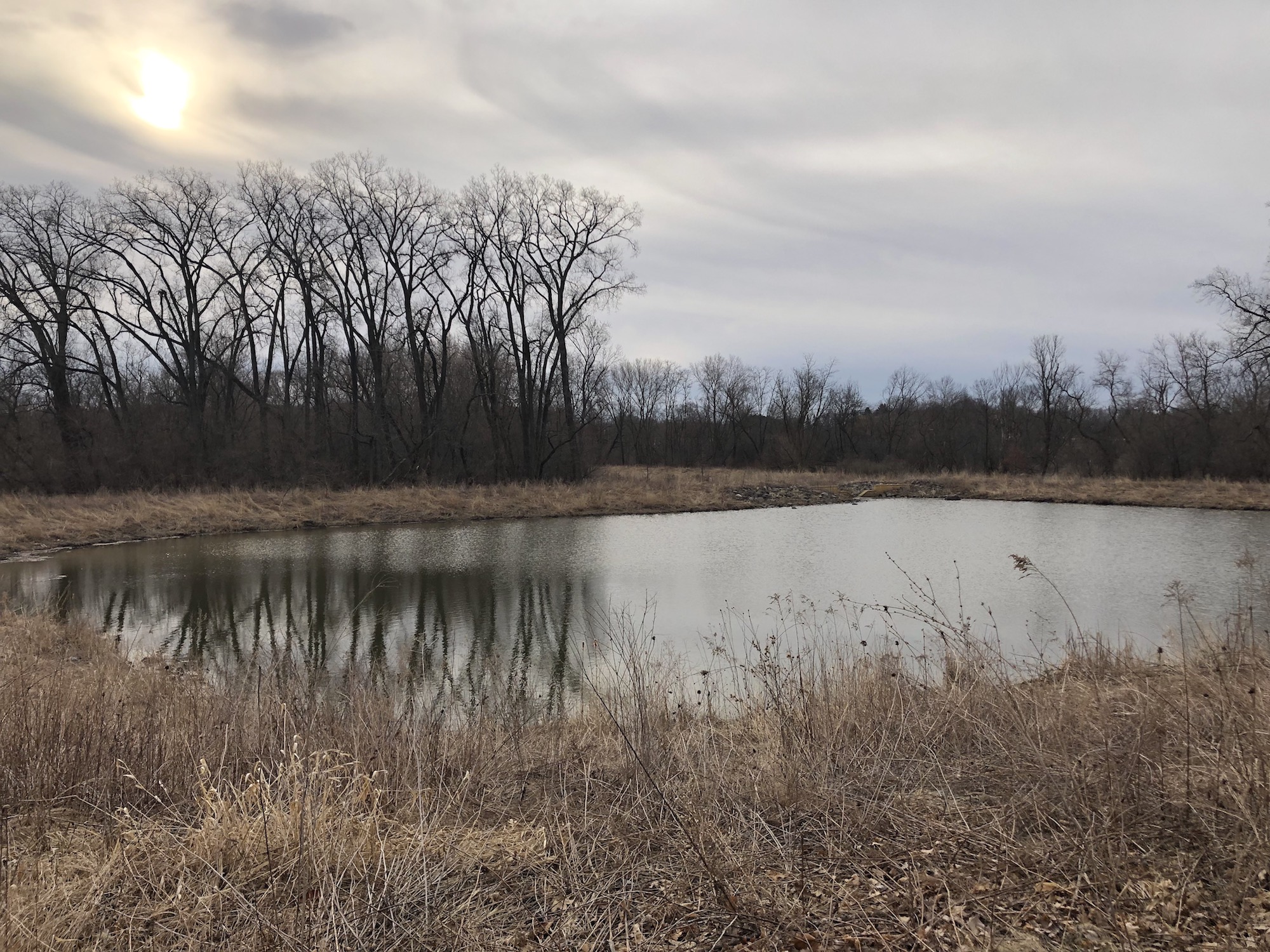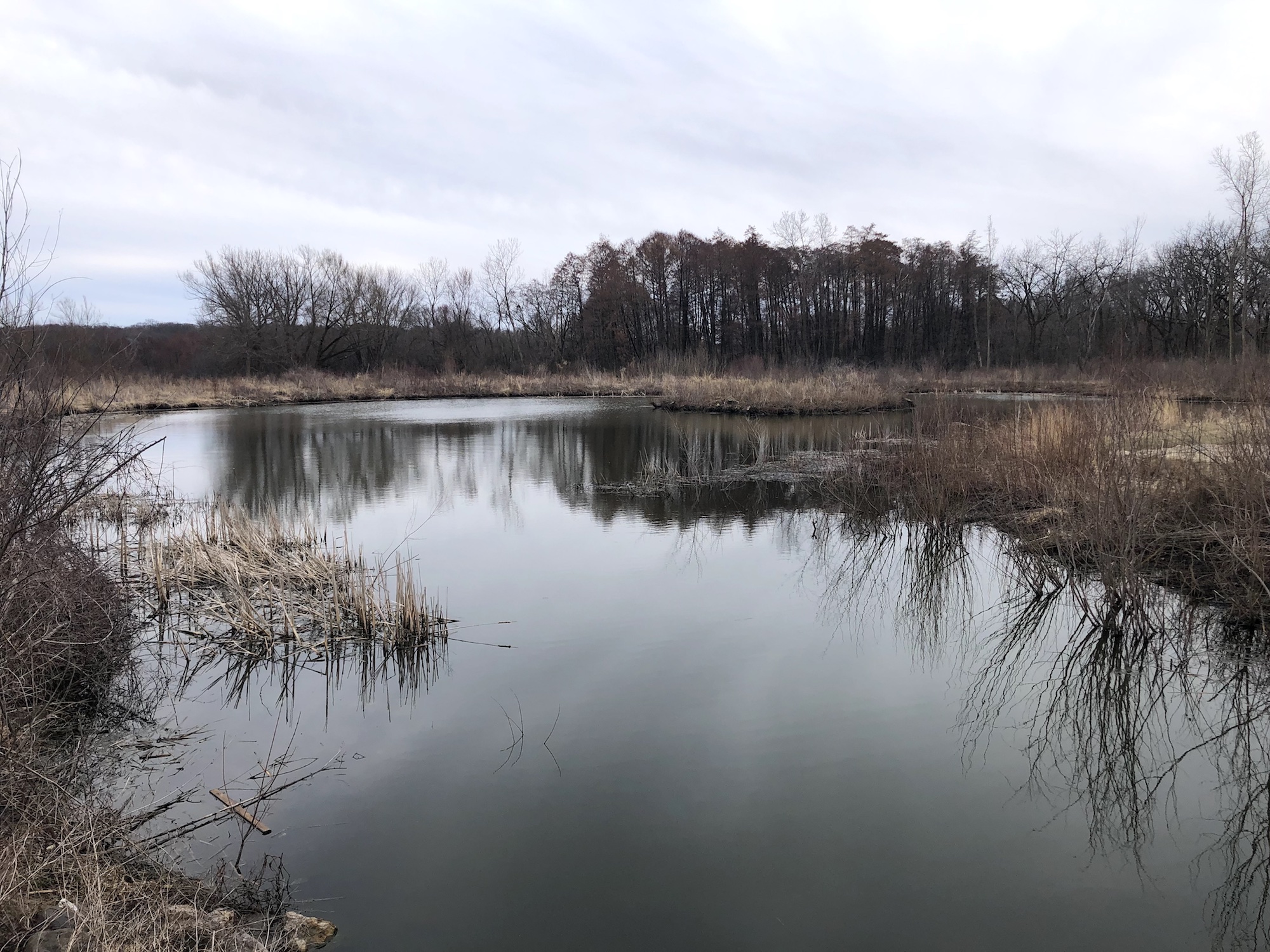 Above: Marion-Dunn Retaining Pond on March 30, 2019 (38°).