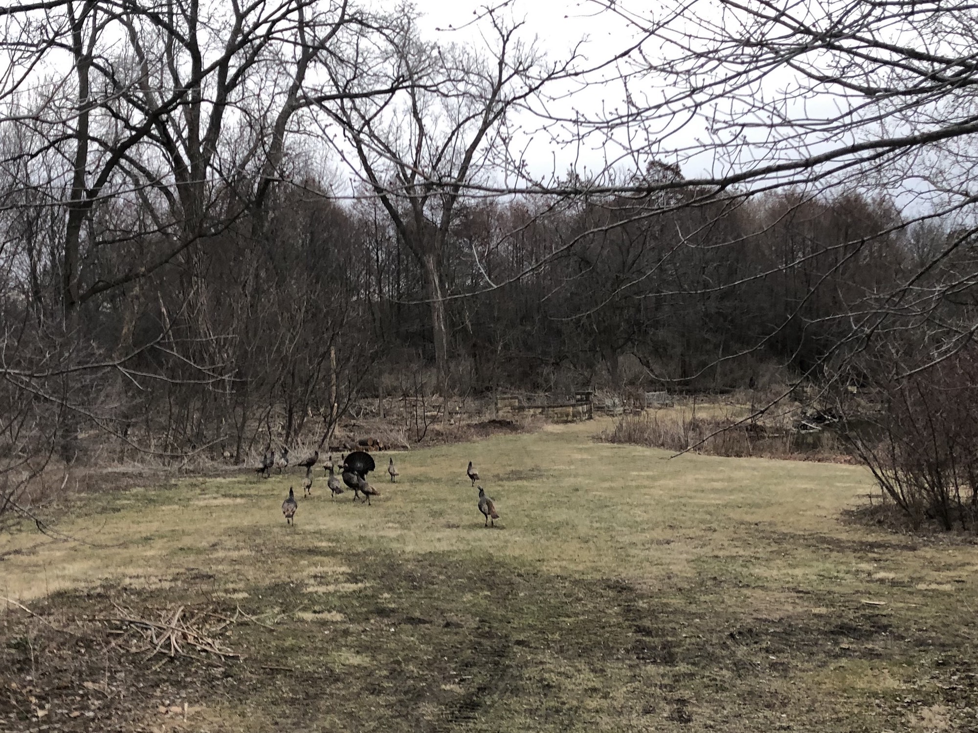 Below: Rafter of about 15 wild turkeys by Duck Pond.