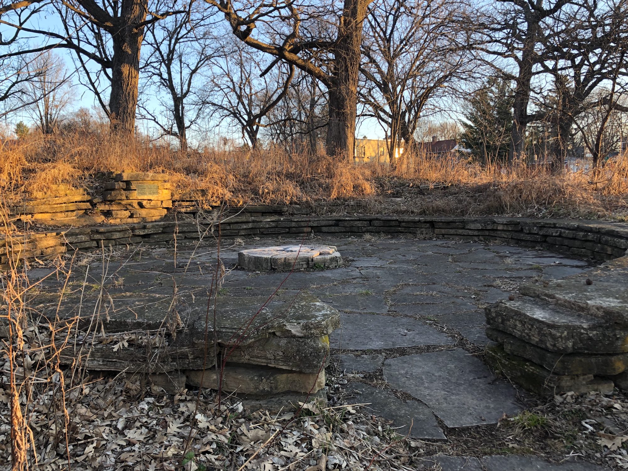 Above: Retaining pond on corner of Nakoma Road and Manitou Way on April 3, 2019 (36°).