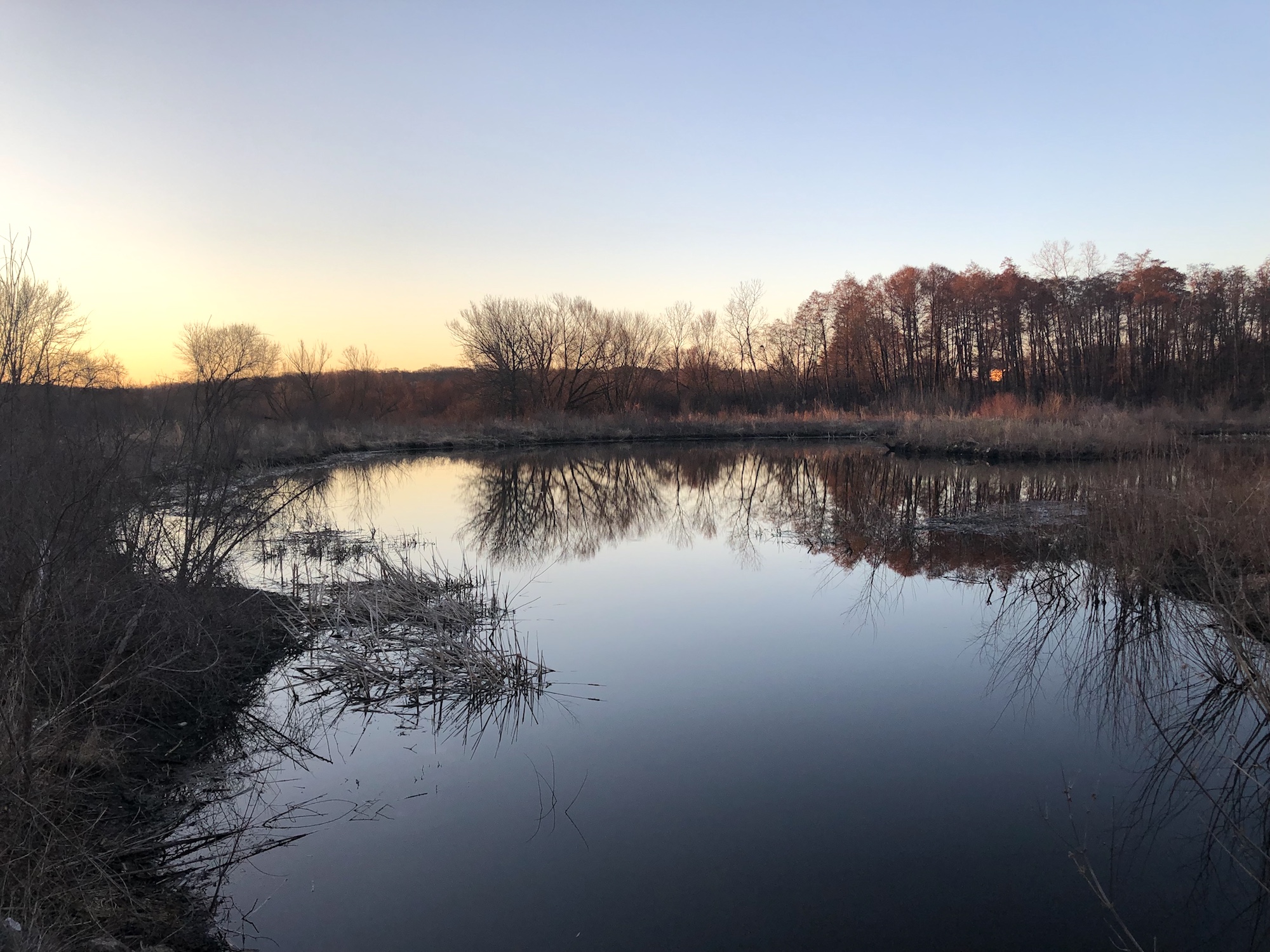 Above: Marion-Dunn Retaining Pond on April 3, 2019 (36°).