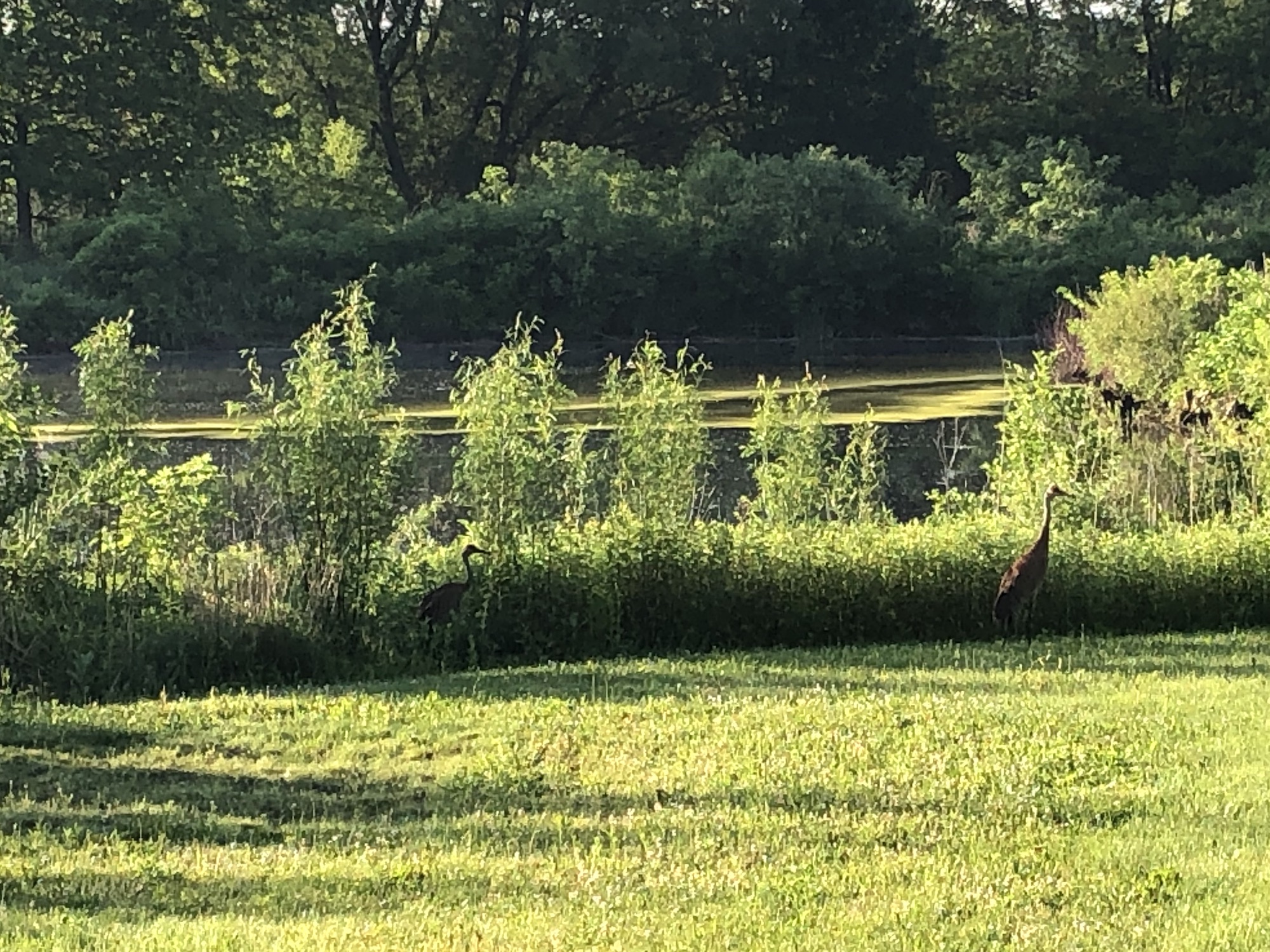 Above: Sandhill Cranes around Marion-Dunn Retaining Pond on June 7, 2019 (60°).