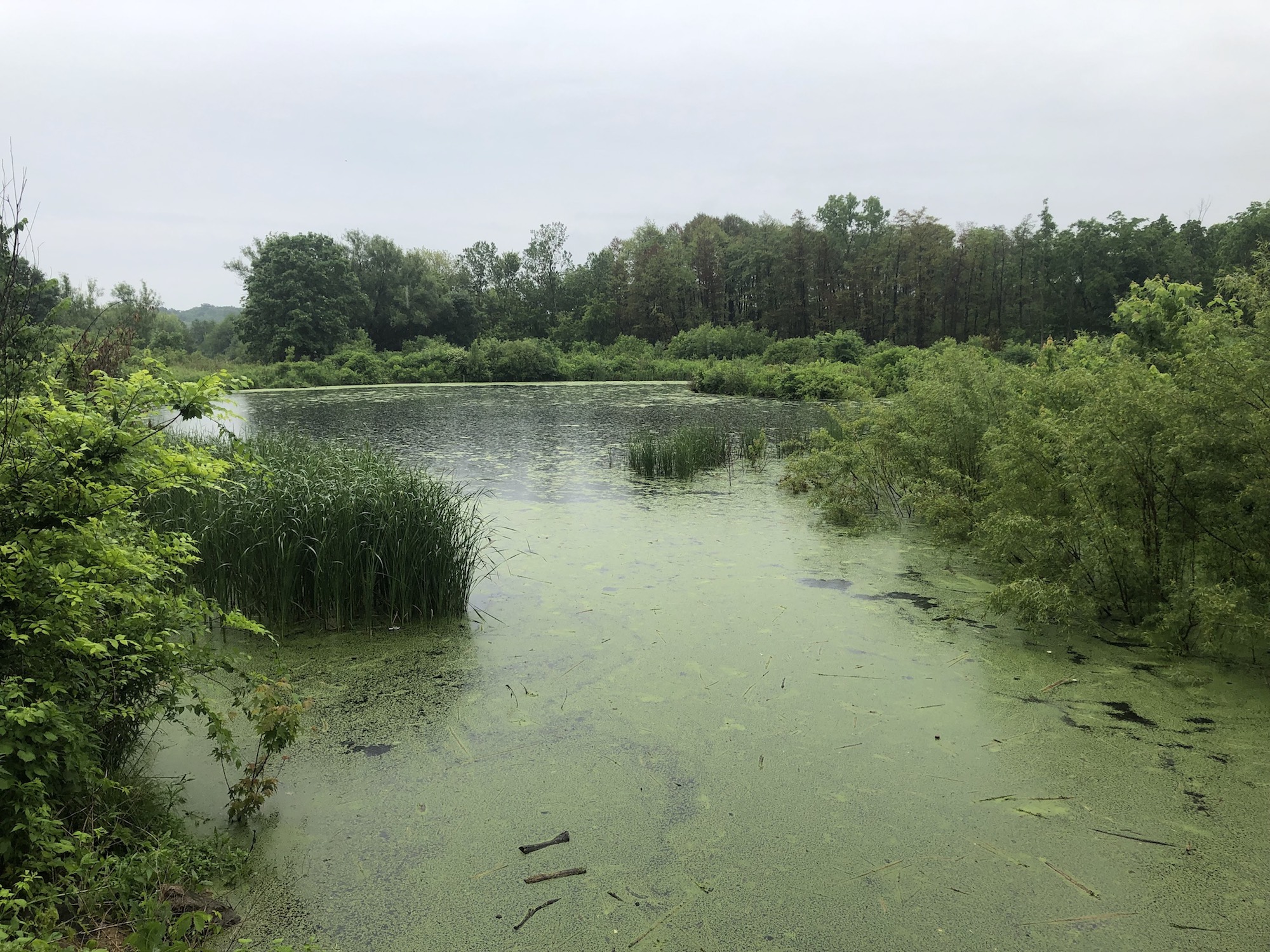 Above: Marion-Dunn Retaining Pond on June 19, 2019 (63°).