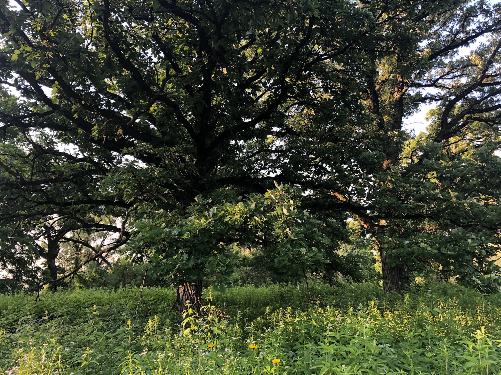 Above: Oak Savanna on July 3, 2019 (68°). False sunflower in foreground.