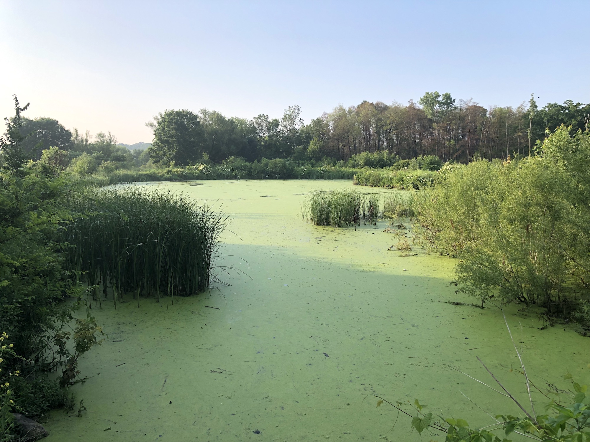 Above: Marion-Dunn Retaining Pond on July 8, 2019 (64°).