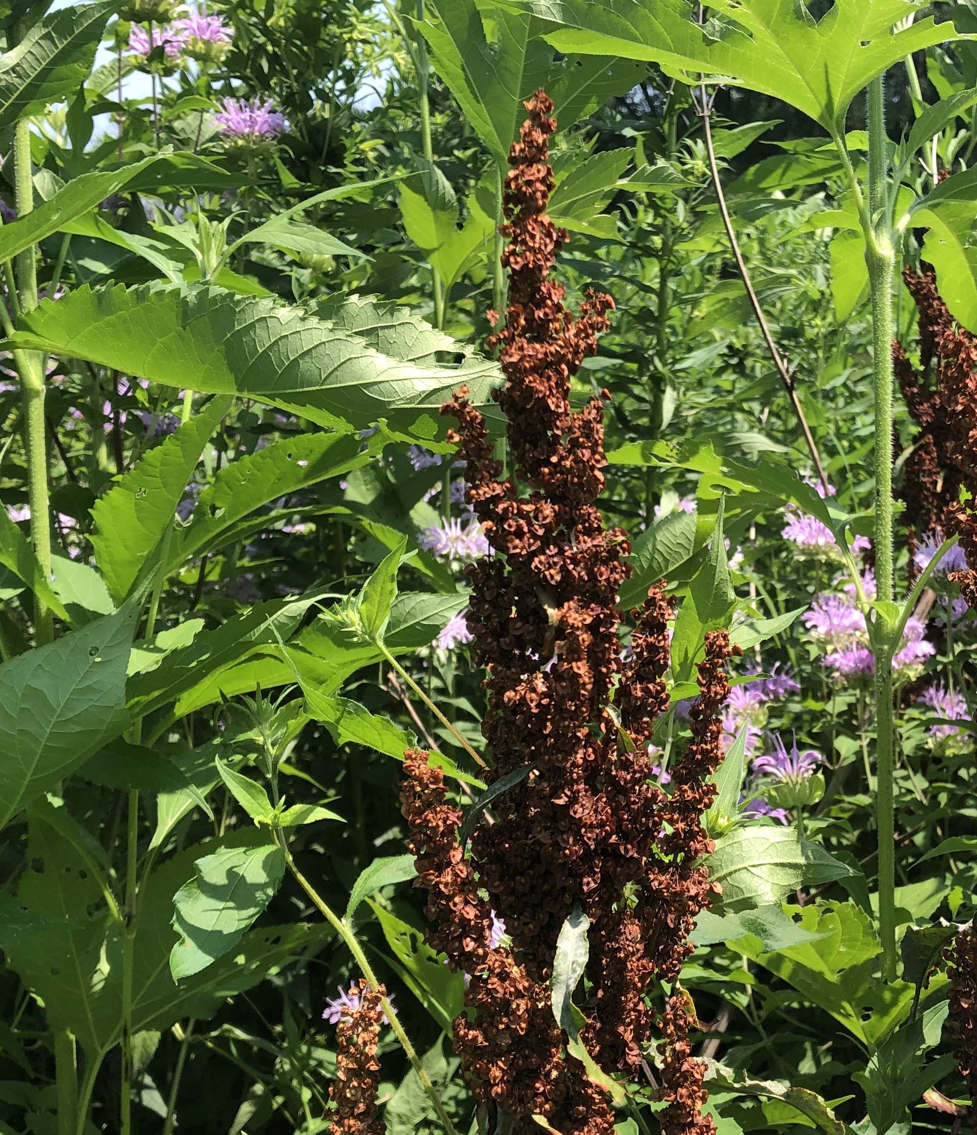 Above: Curly Dock (Rumex crispus) on the banks of the retaining pond on July 23, 2019 (74°).