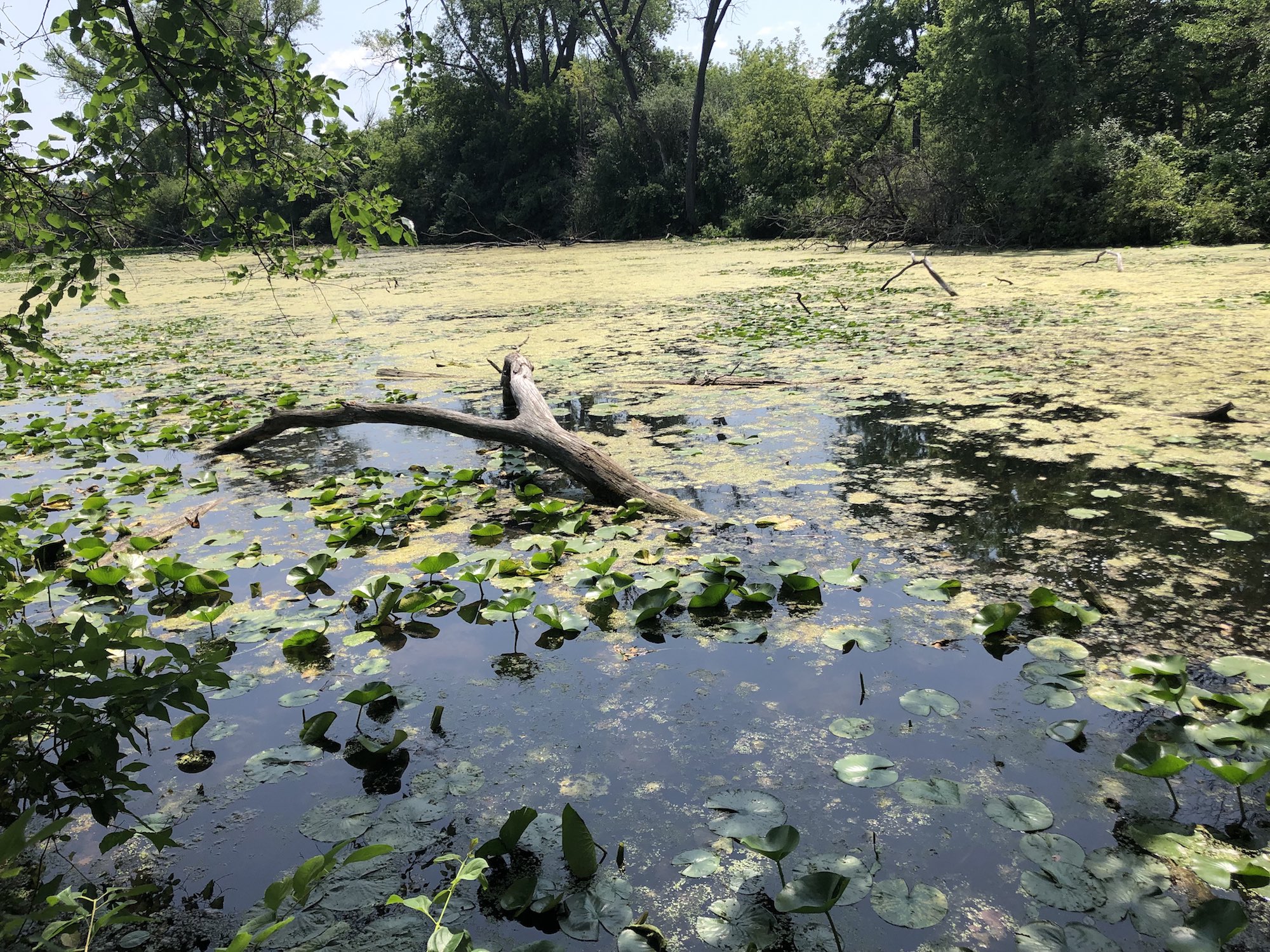 Above: Marion-Dunn Retaining Pond on July 23, 2019 (74°).