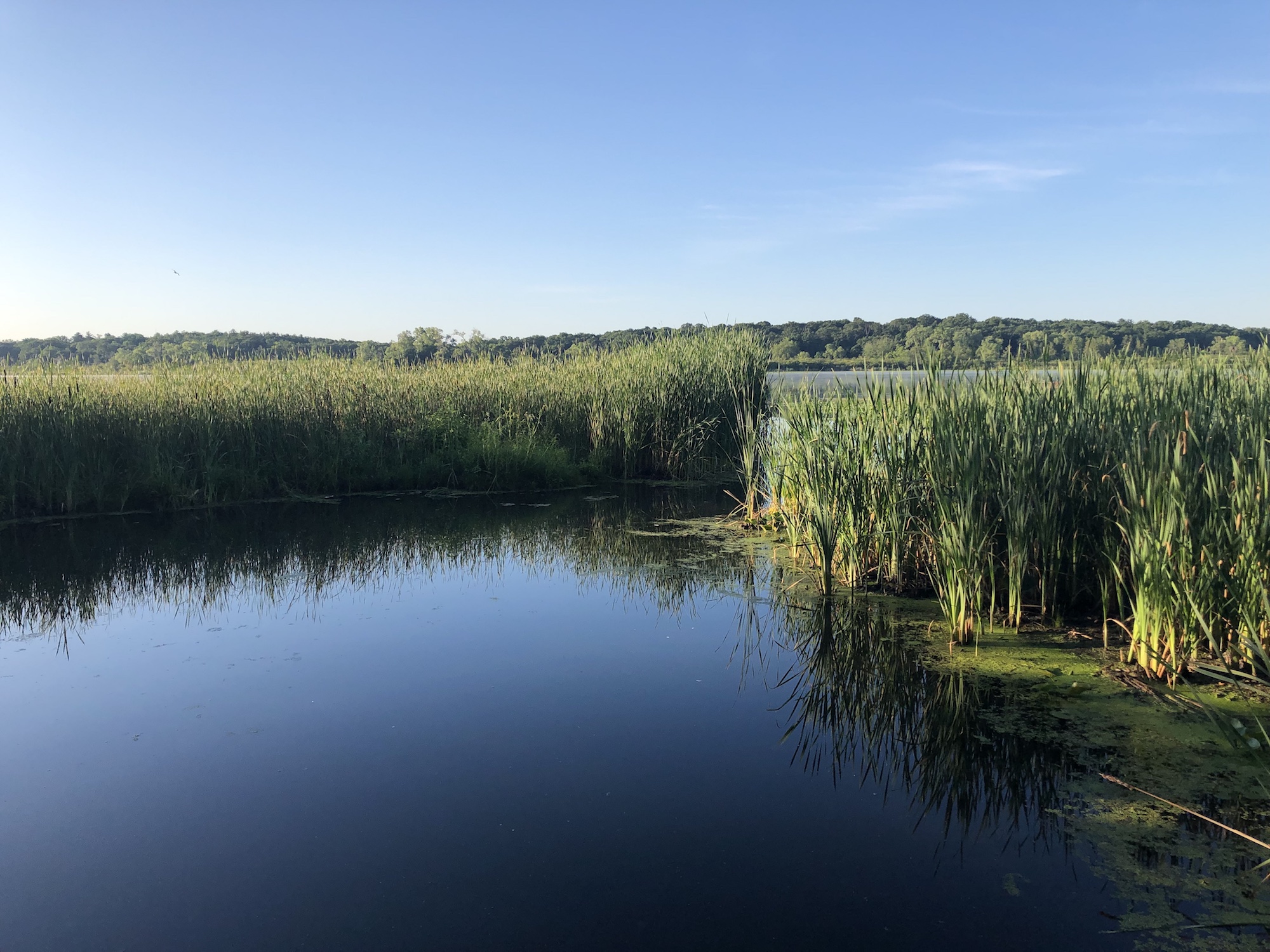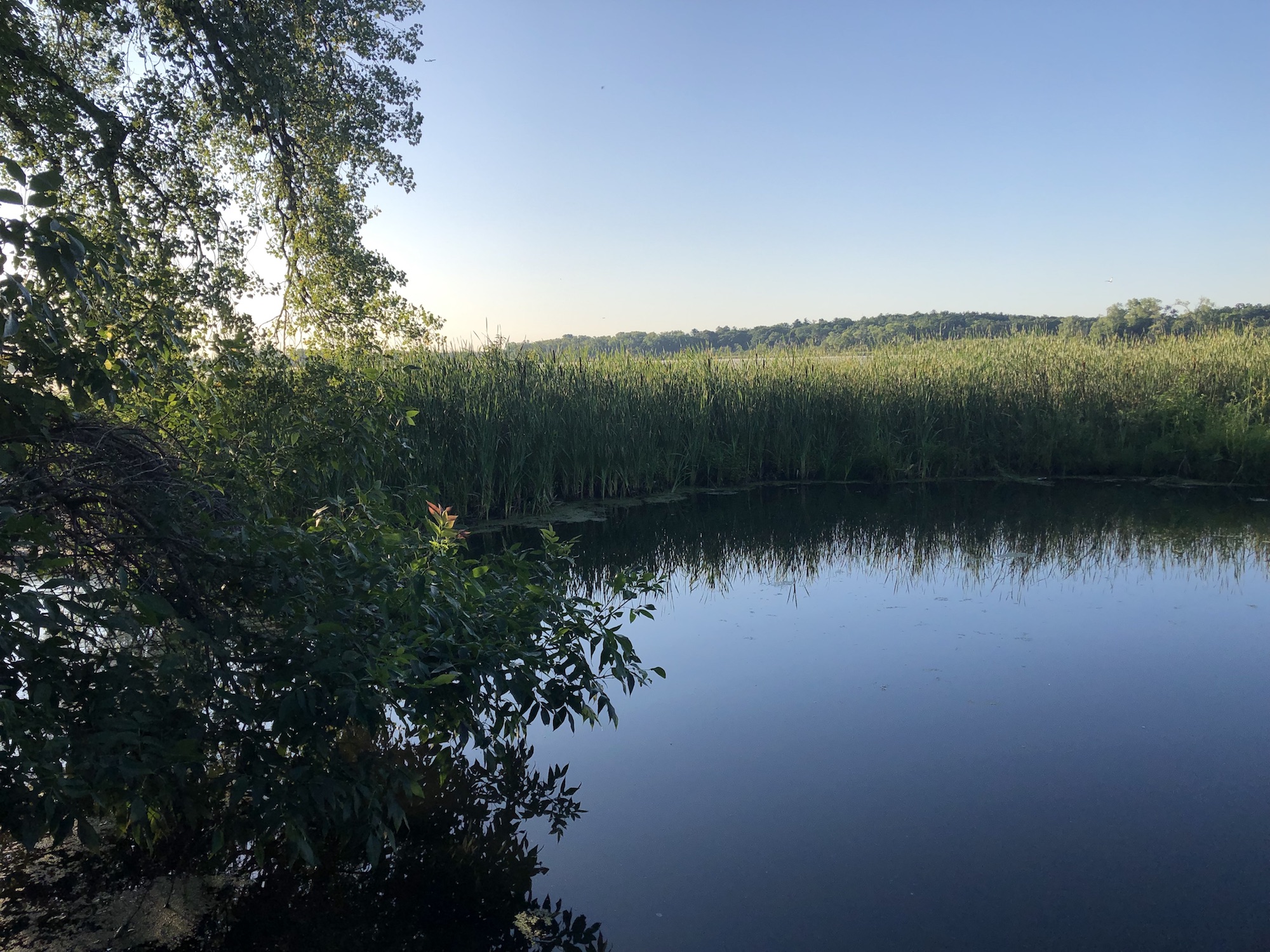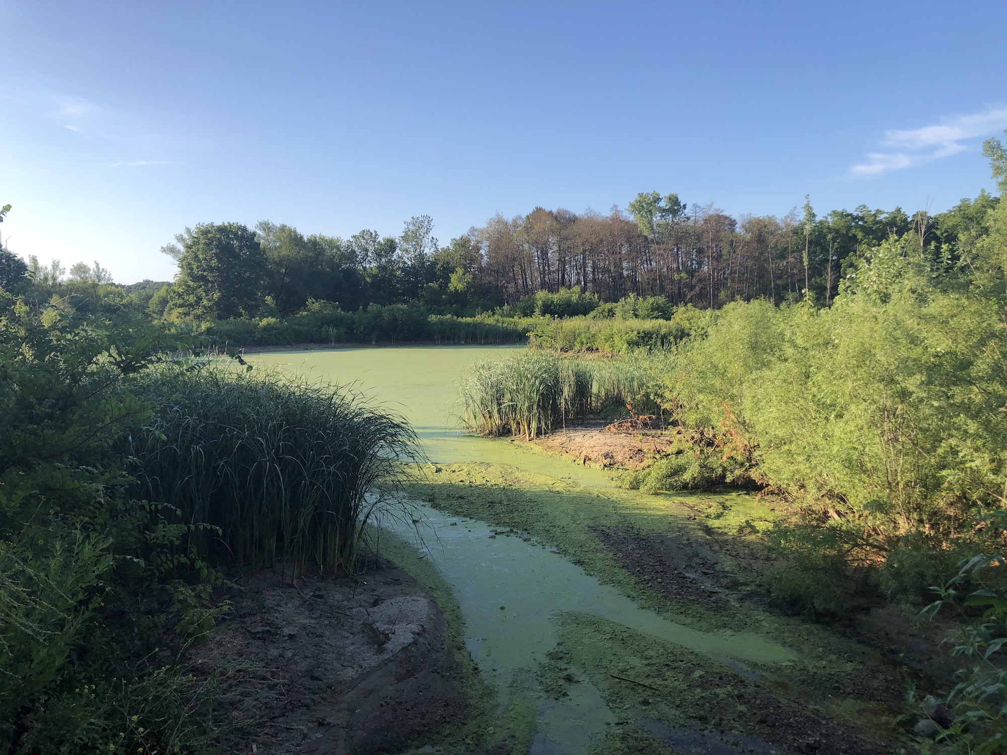 Above: Marion-Dunn Retaining Pond on August 1, 2019 (60°).