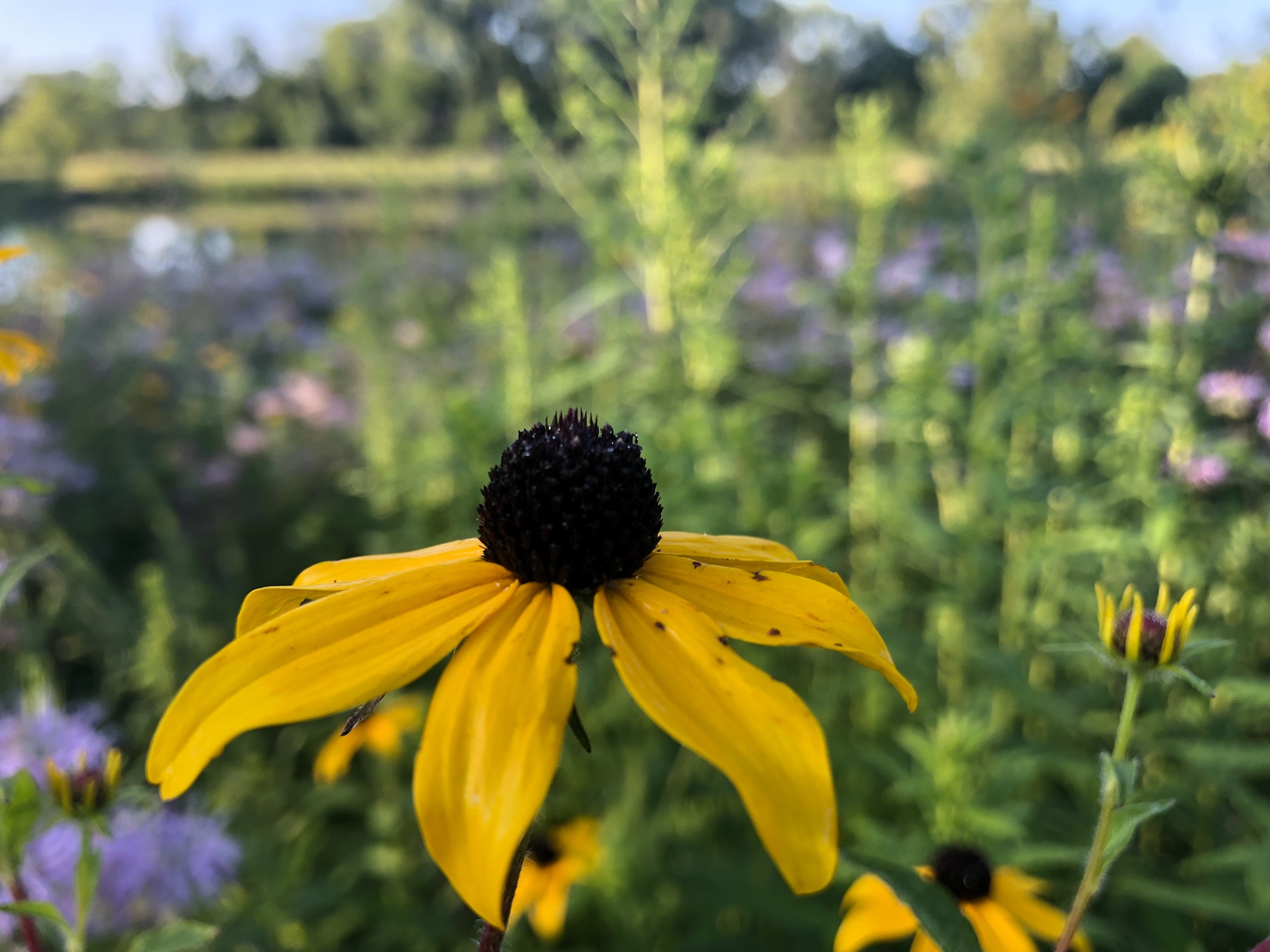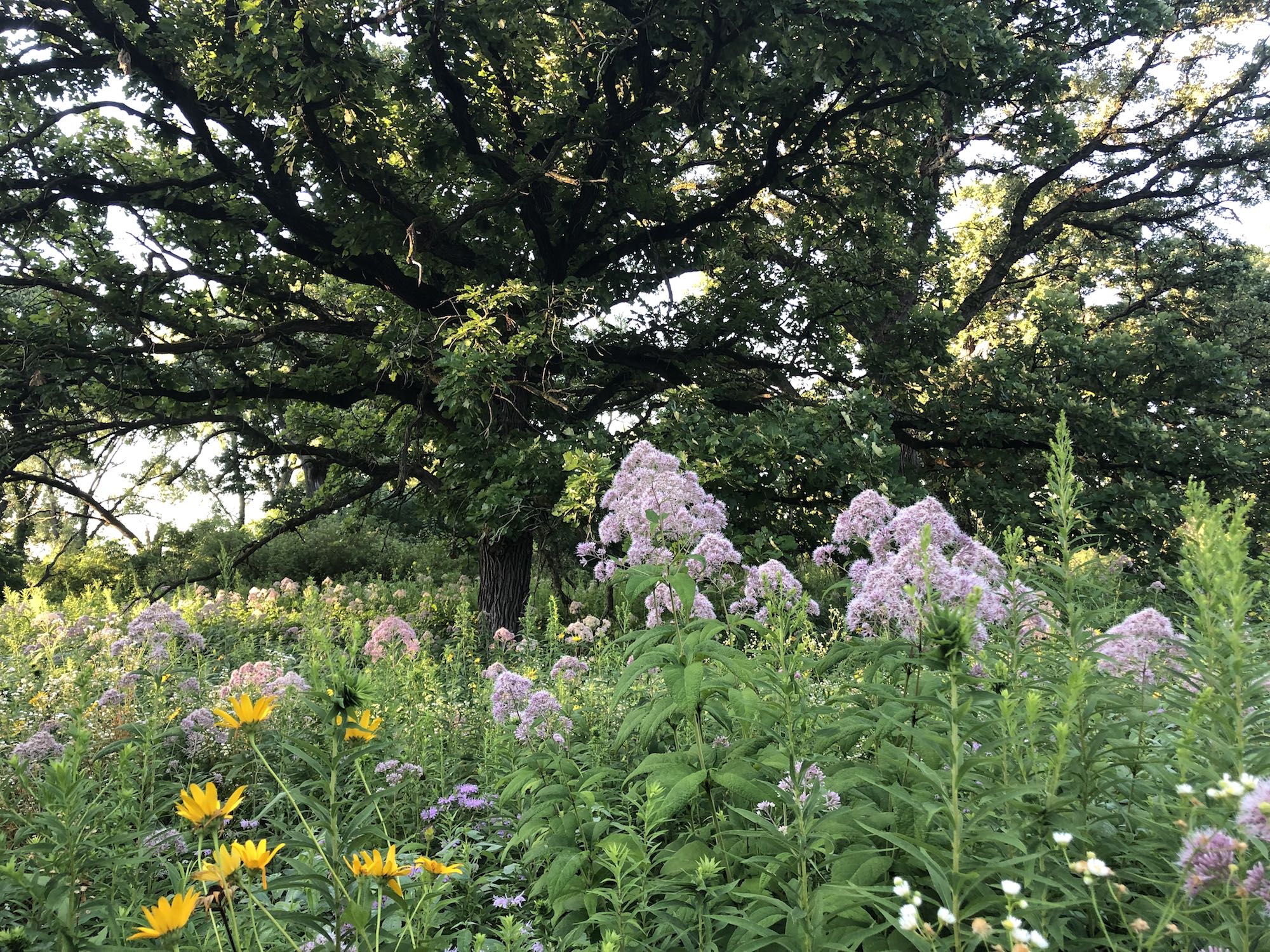 Above: Oak Savanna on August 1, 2019 (60°). False Sunflowers and Joe Pye Weed in foreground.
