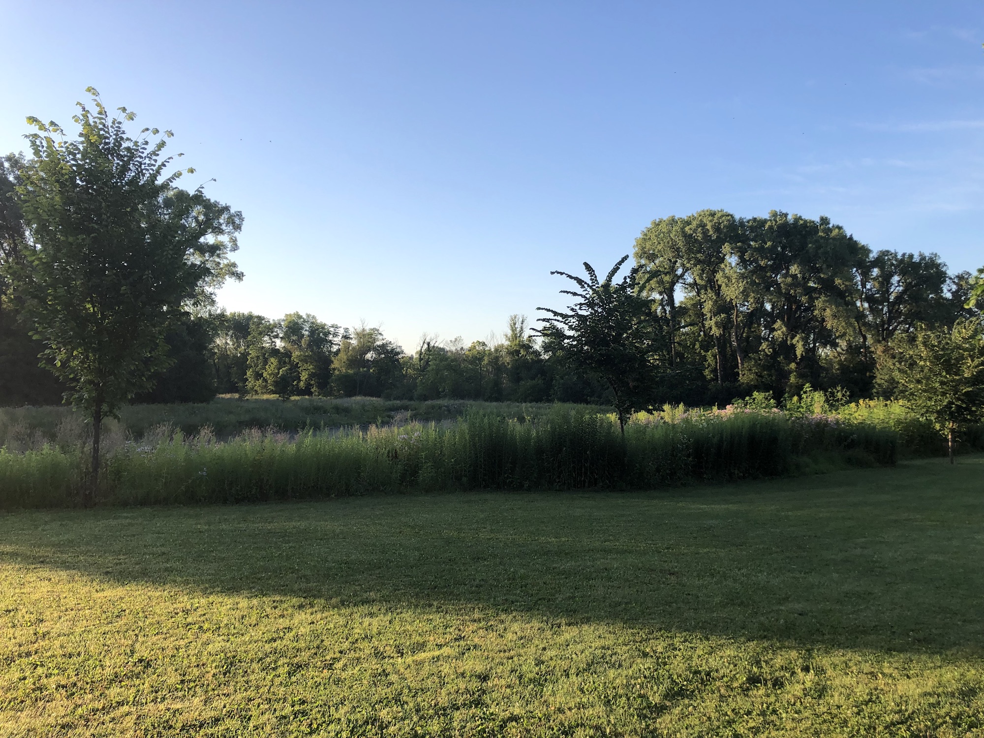Above: Retaining pond on corner of Nakoma Road and Manitou Way on August 1, 2019 (60°).