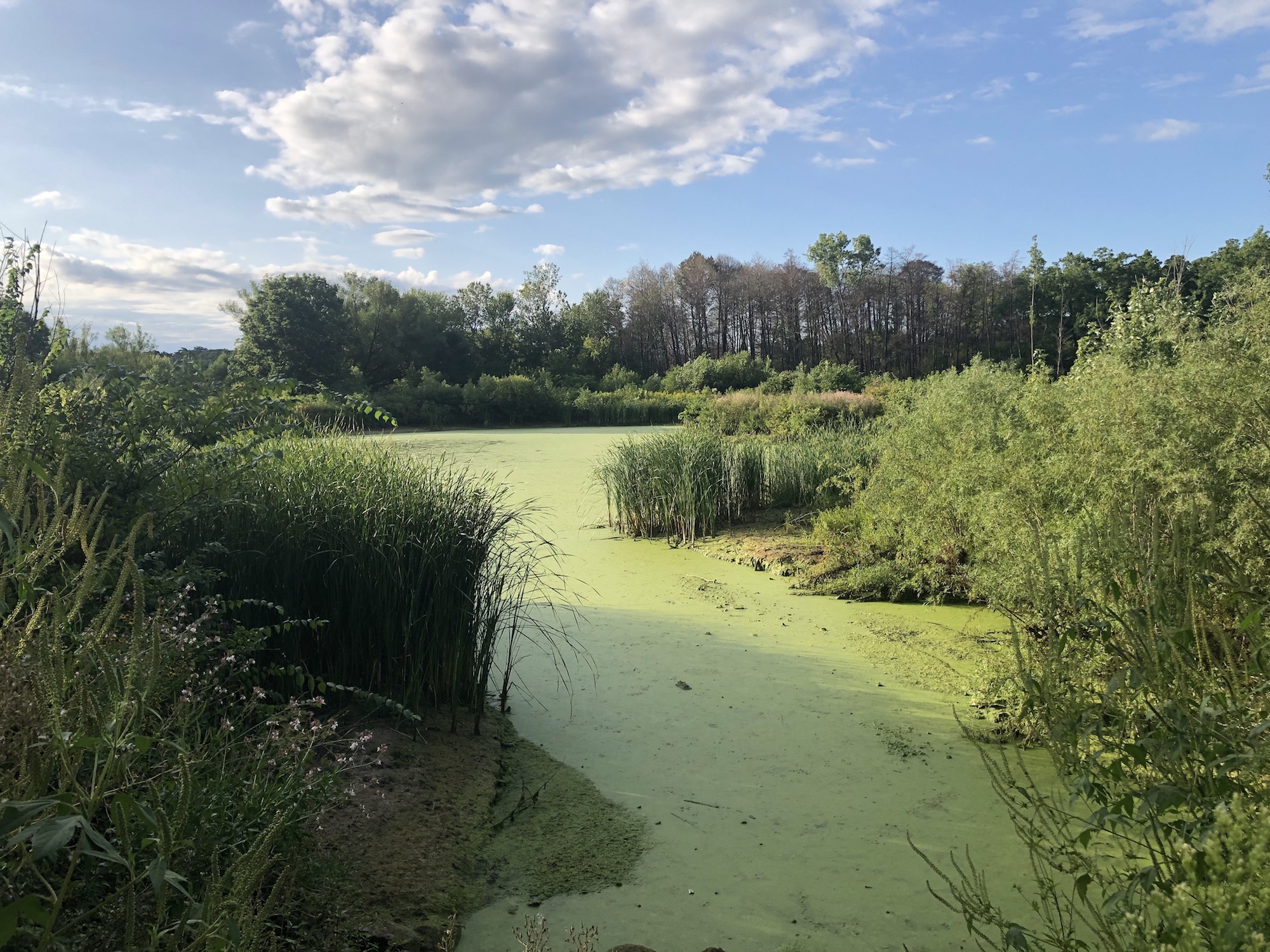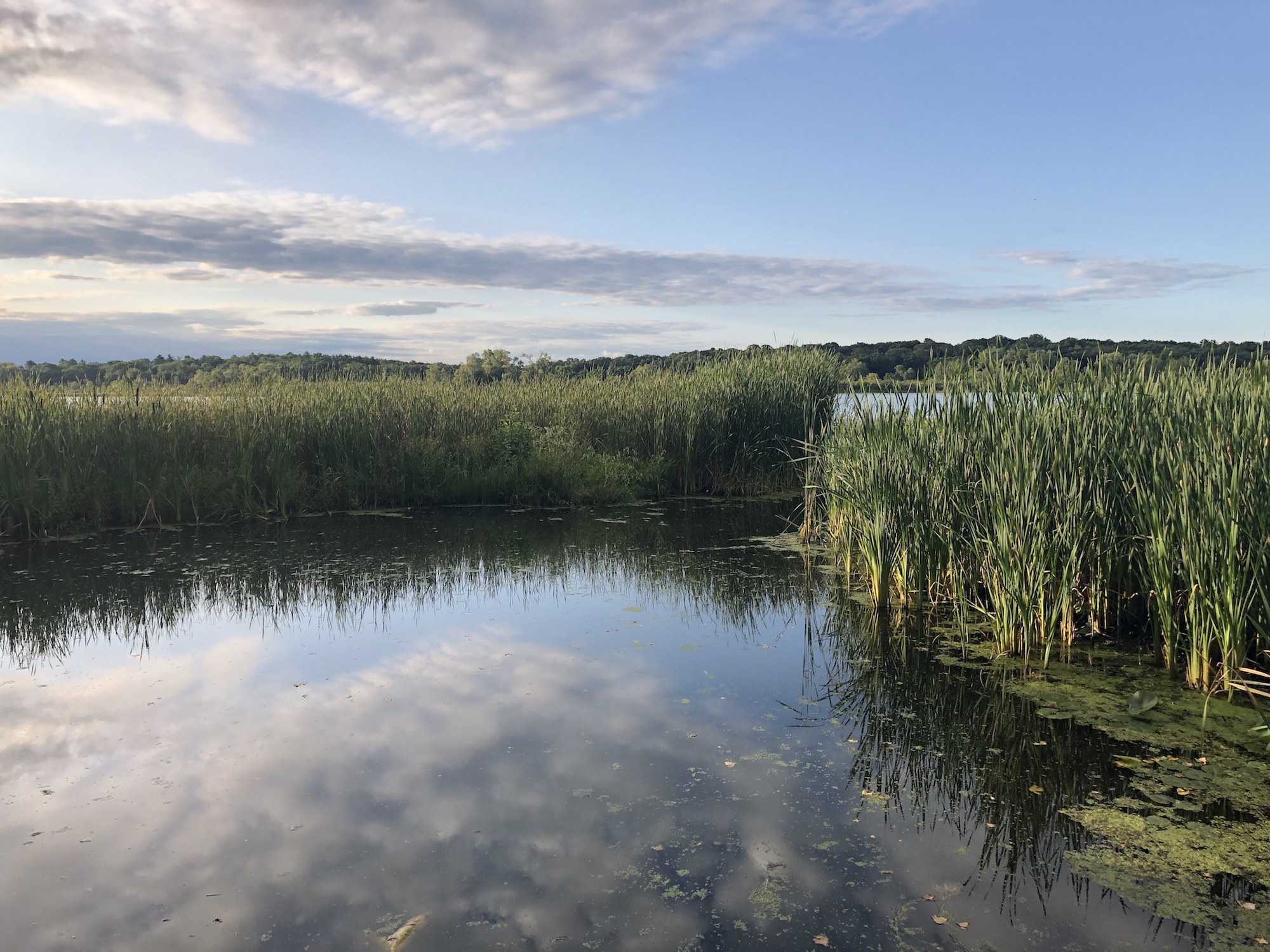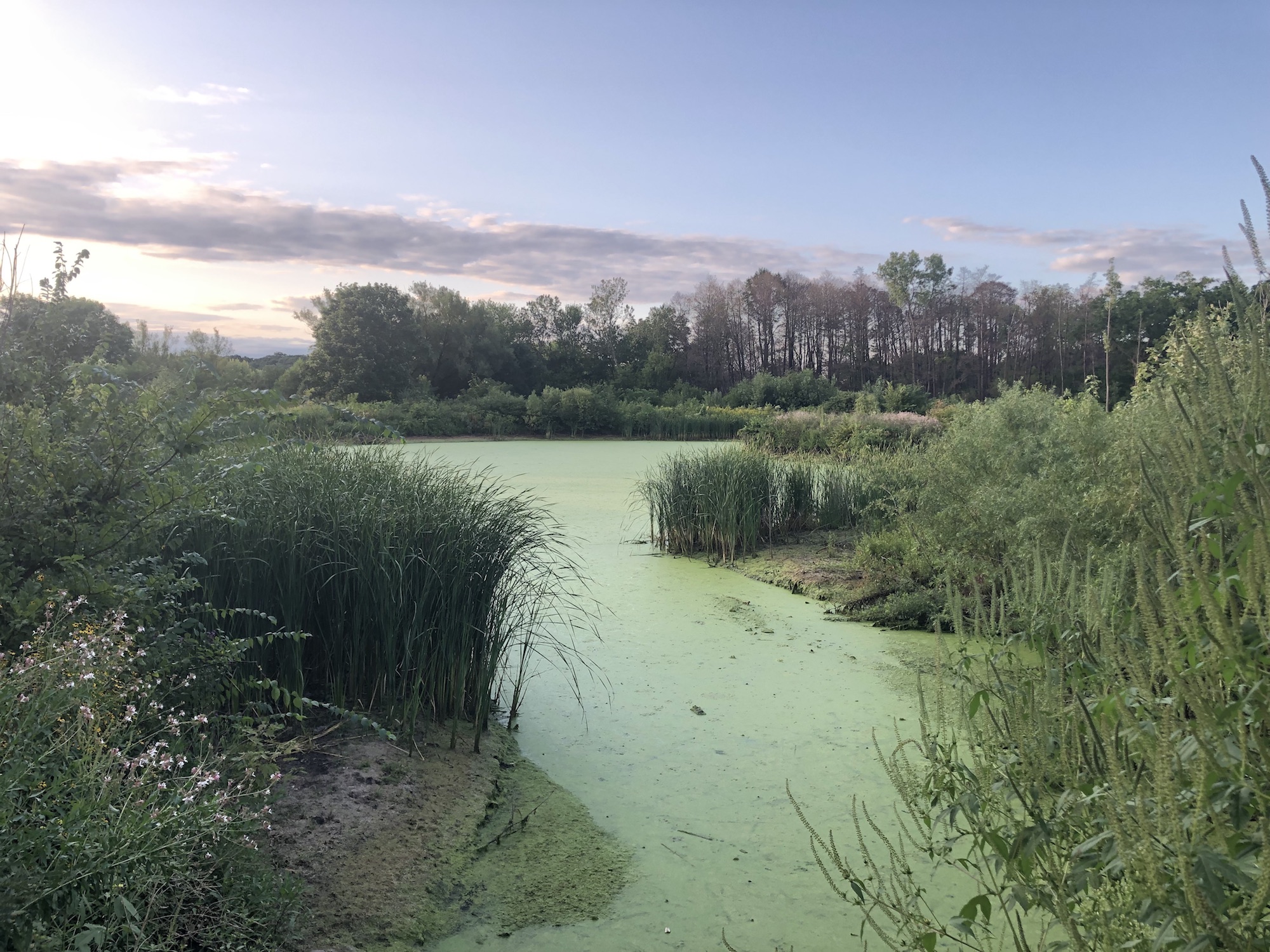 Above: Marion-Dunn Retaining Pond on August 23, 2019 (60°).