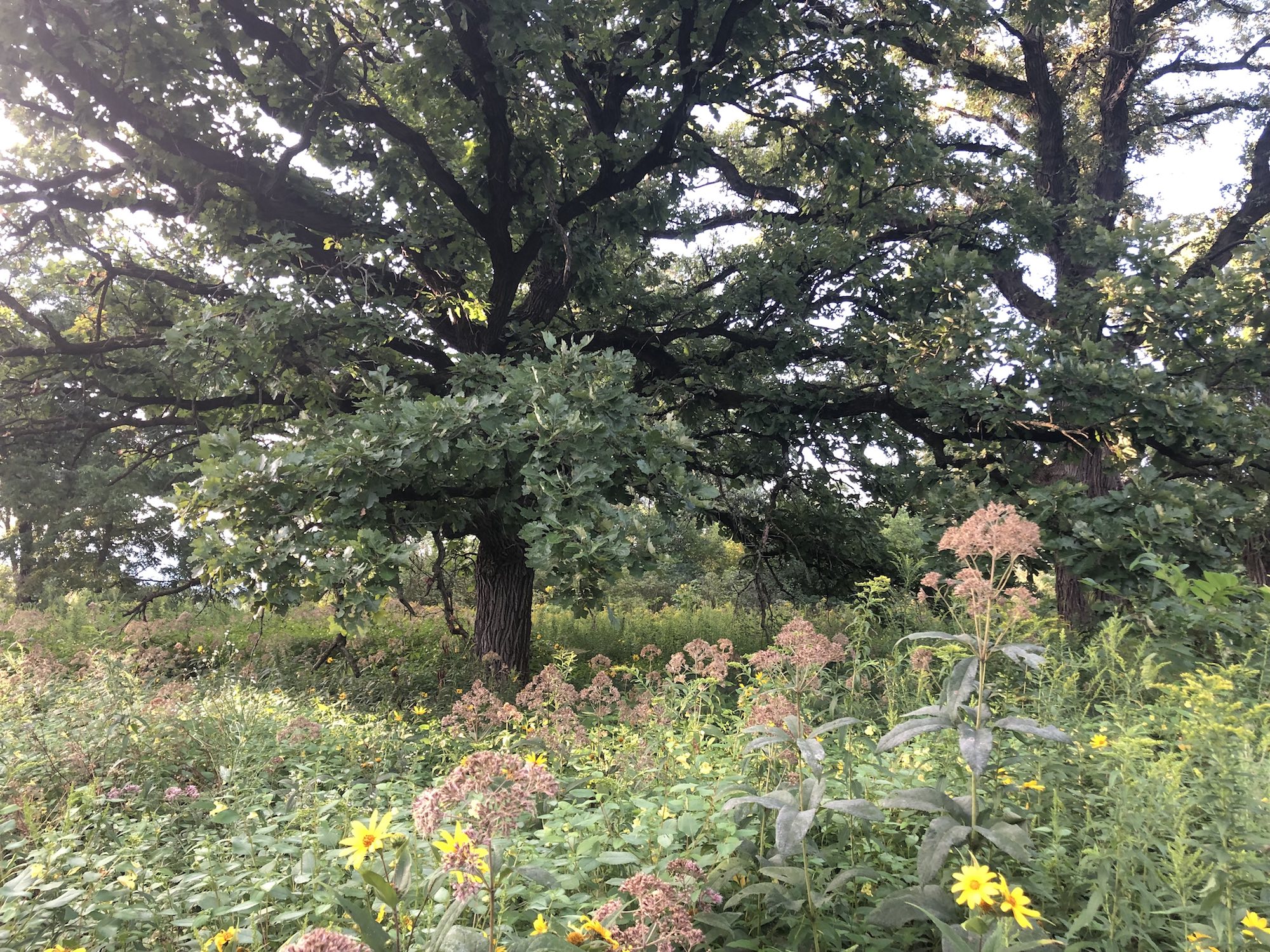 Above: Oak Savanna on August 23, 2019 (60°). Goldenrod and Joe Pye Weed in foreground.