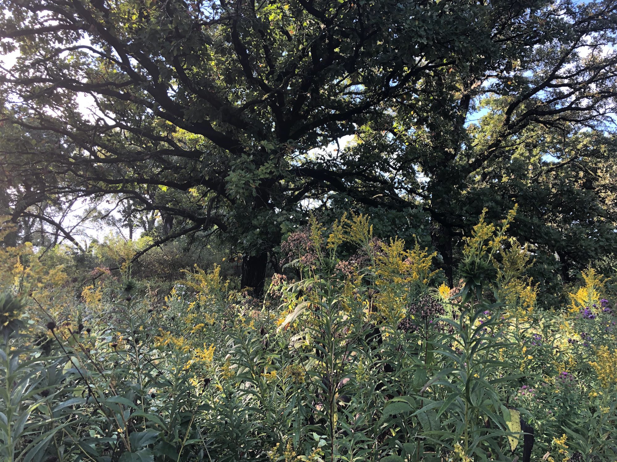 Above: Light Blue Aster along banks of retaining pond on corner of Nakoma Road and Manitou Way on September 13, 2019 (61°).