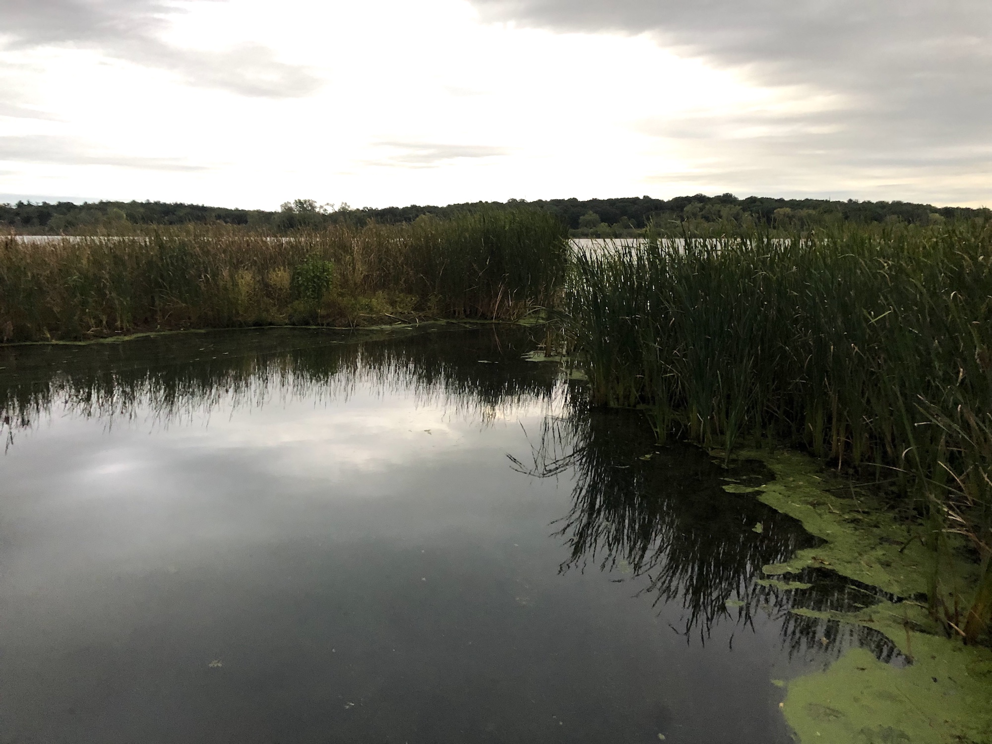 Above: Marion-Dunn Retaining Pond on September 27, 2019 (61°).